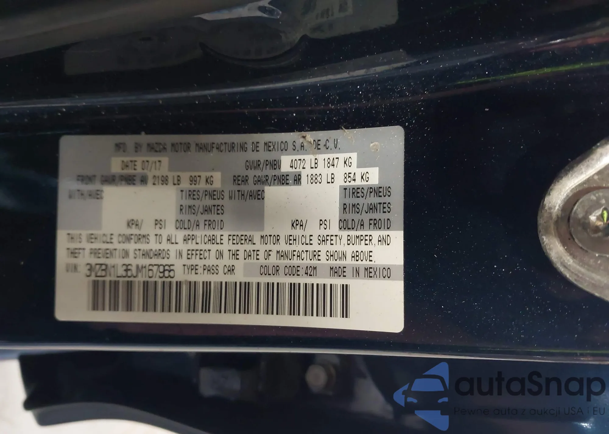 LOT: 42830091 VIN: 3MZBN1L36JM167965