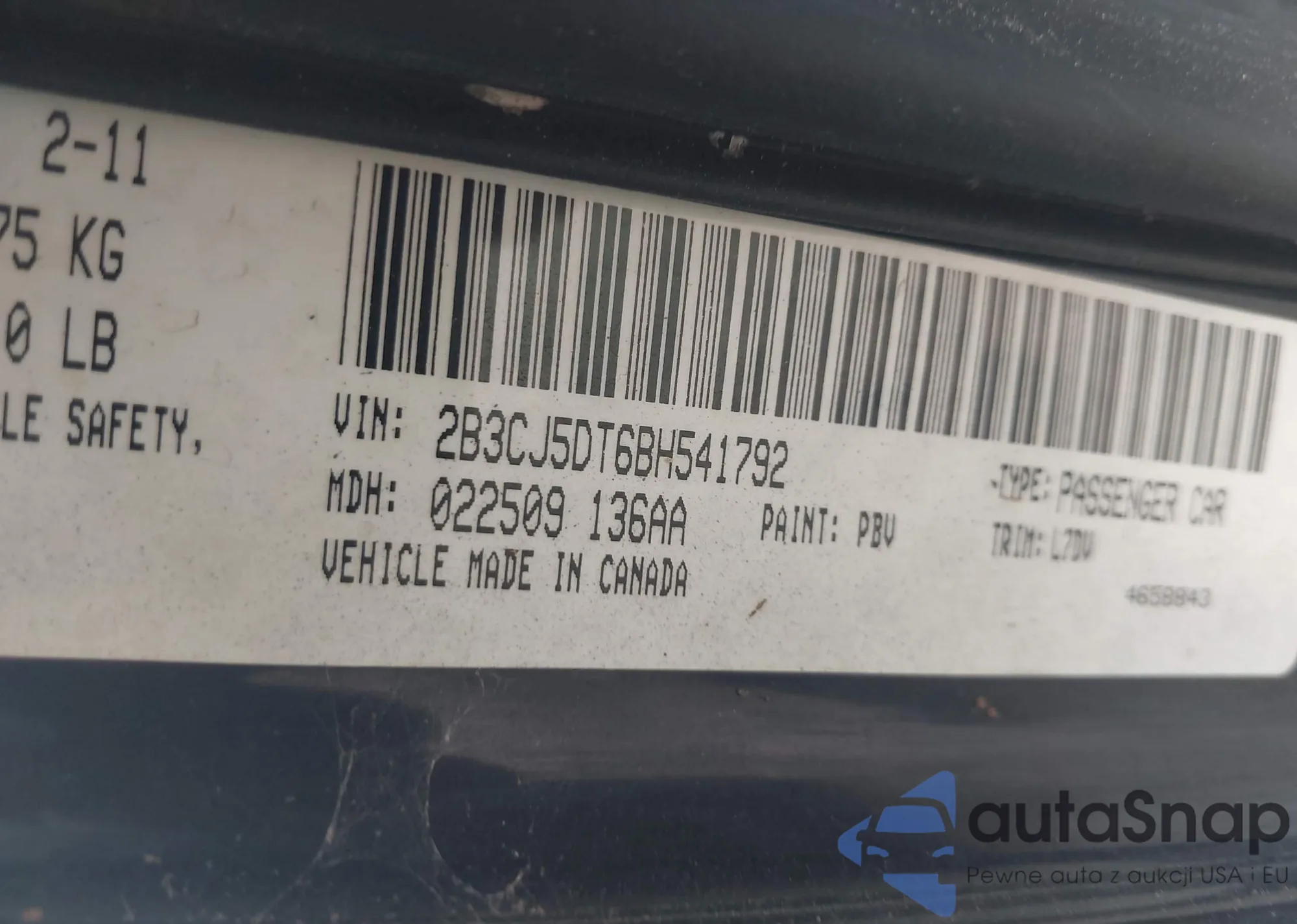 • VIN 1VWAP7A30CC027457