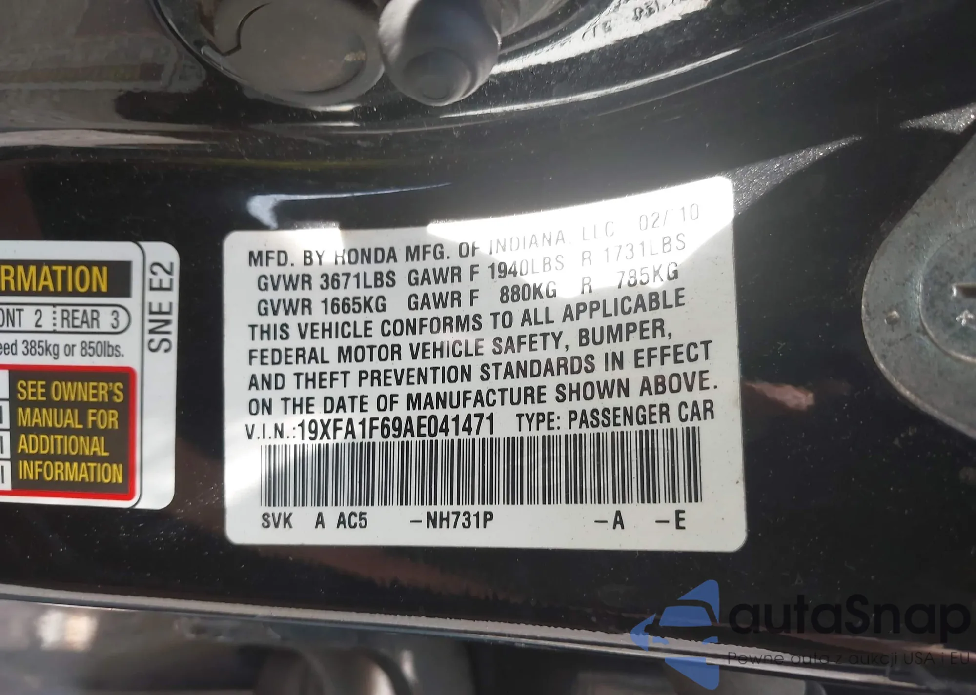 • VIN 19XFA1F69AE041471