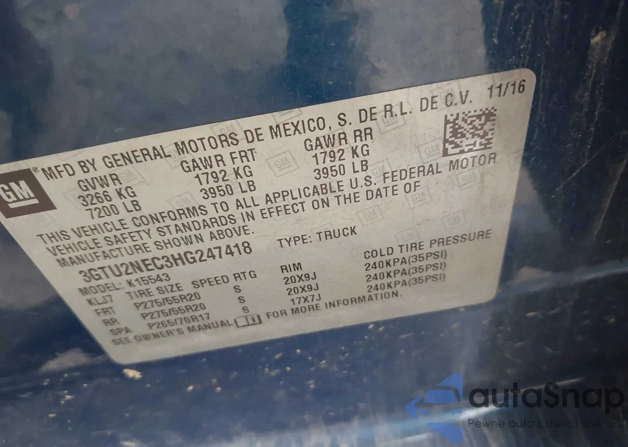 • VIN 3GTU2NEC3HG247418