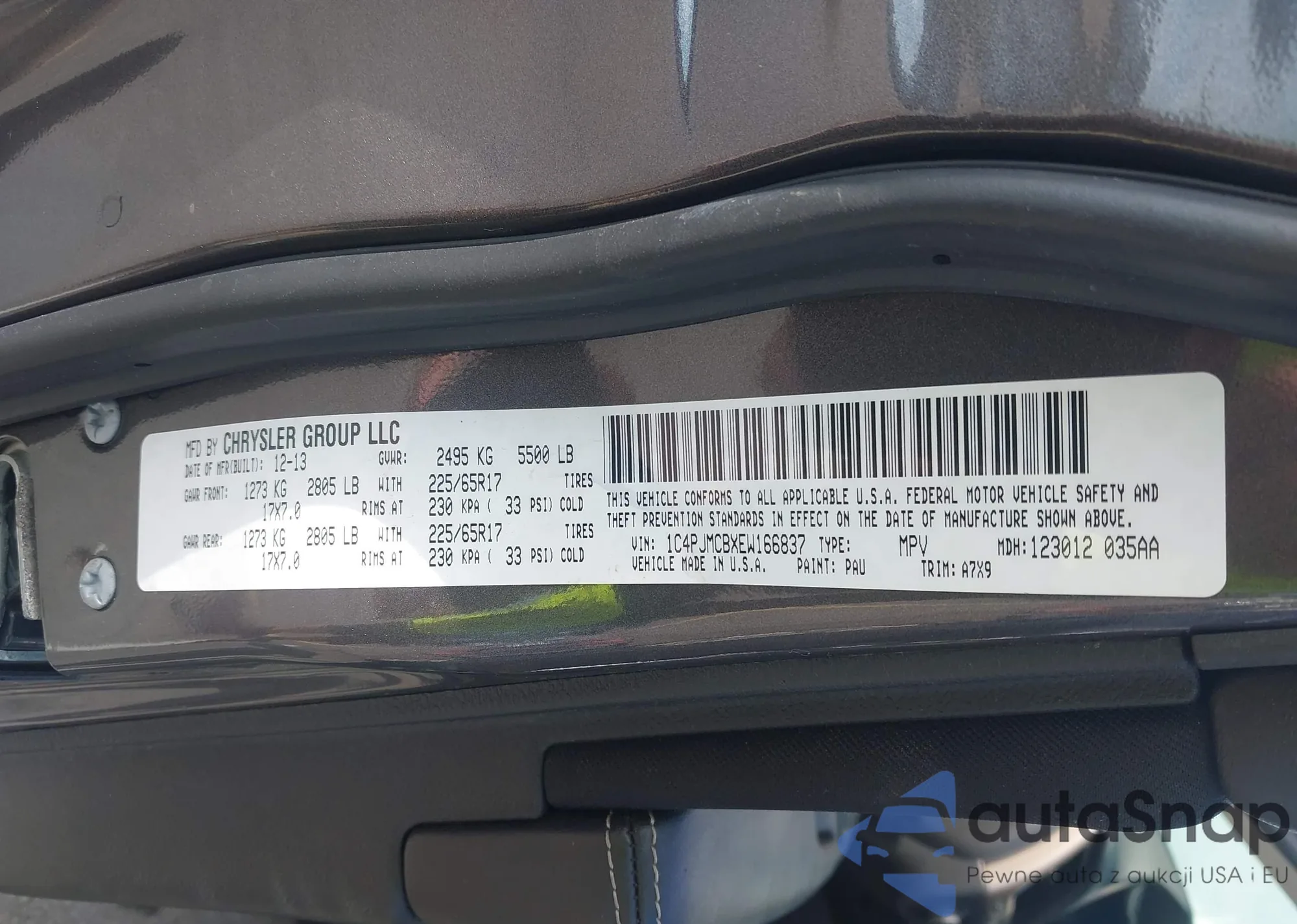 LOT: 42578214 VIN: 1C4PJMCBXEW166837