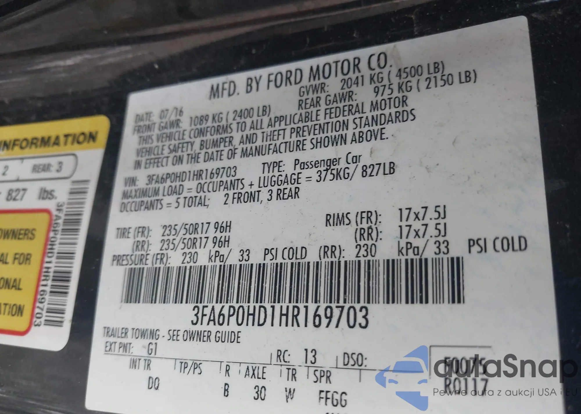 • VIN WMWZC5C56FWP46166