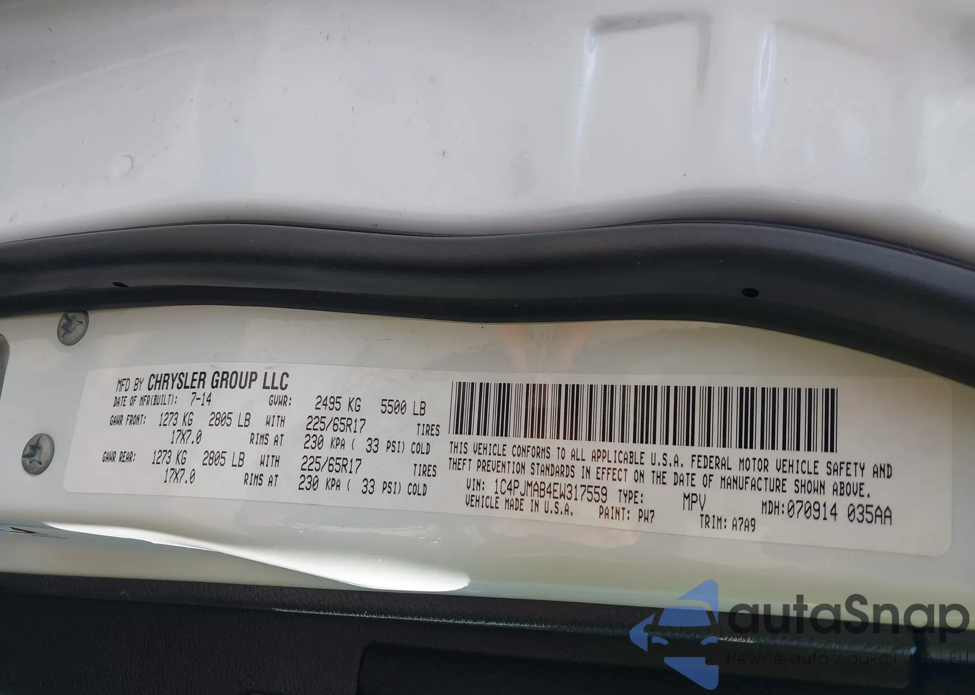 • VIN 1C4PJMAB4EW317559