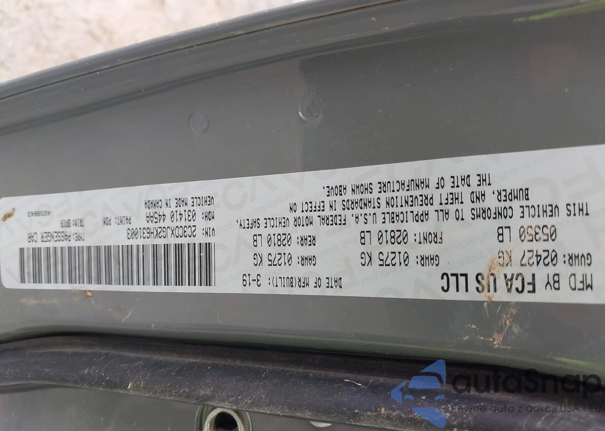 • VIN 2C3CDXJG2KH631003