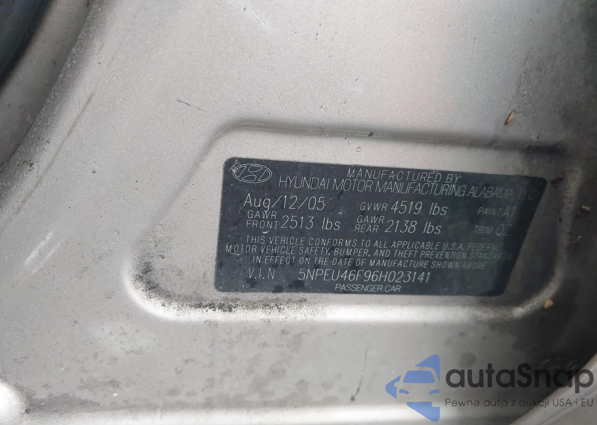 LOT: 42788083 VIN: 5NPEU46F96H023141