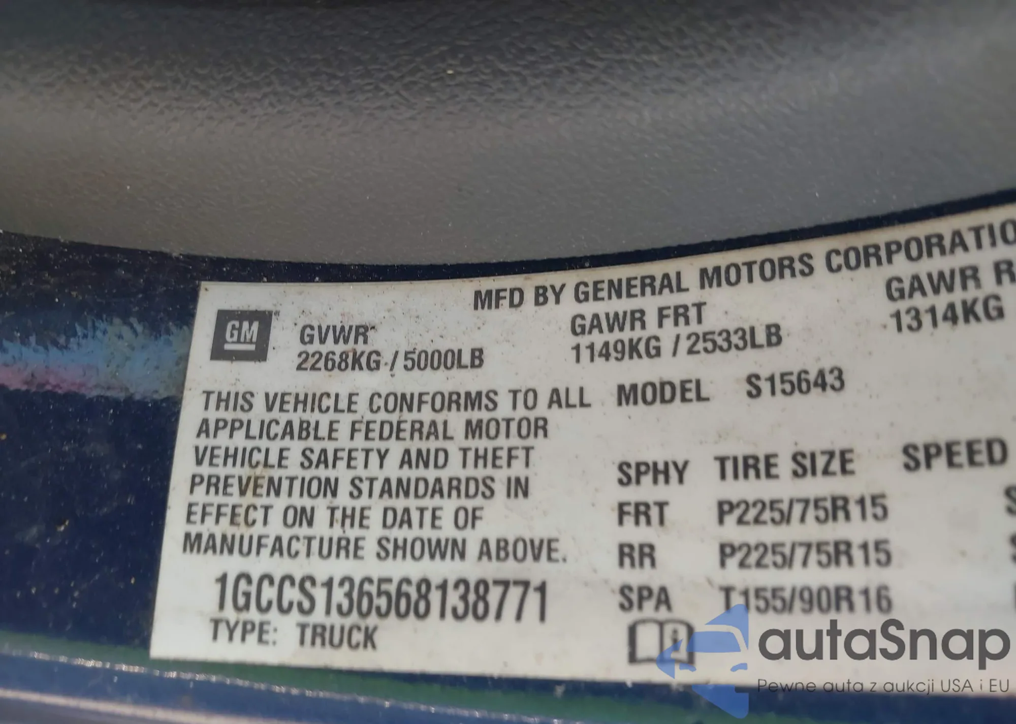 • VIN 1GCCS136568138771