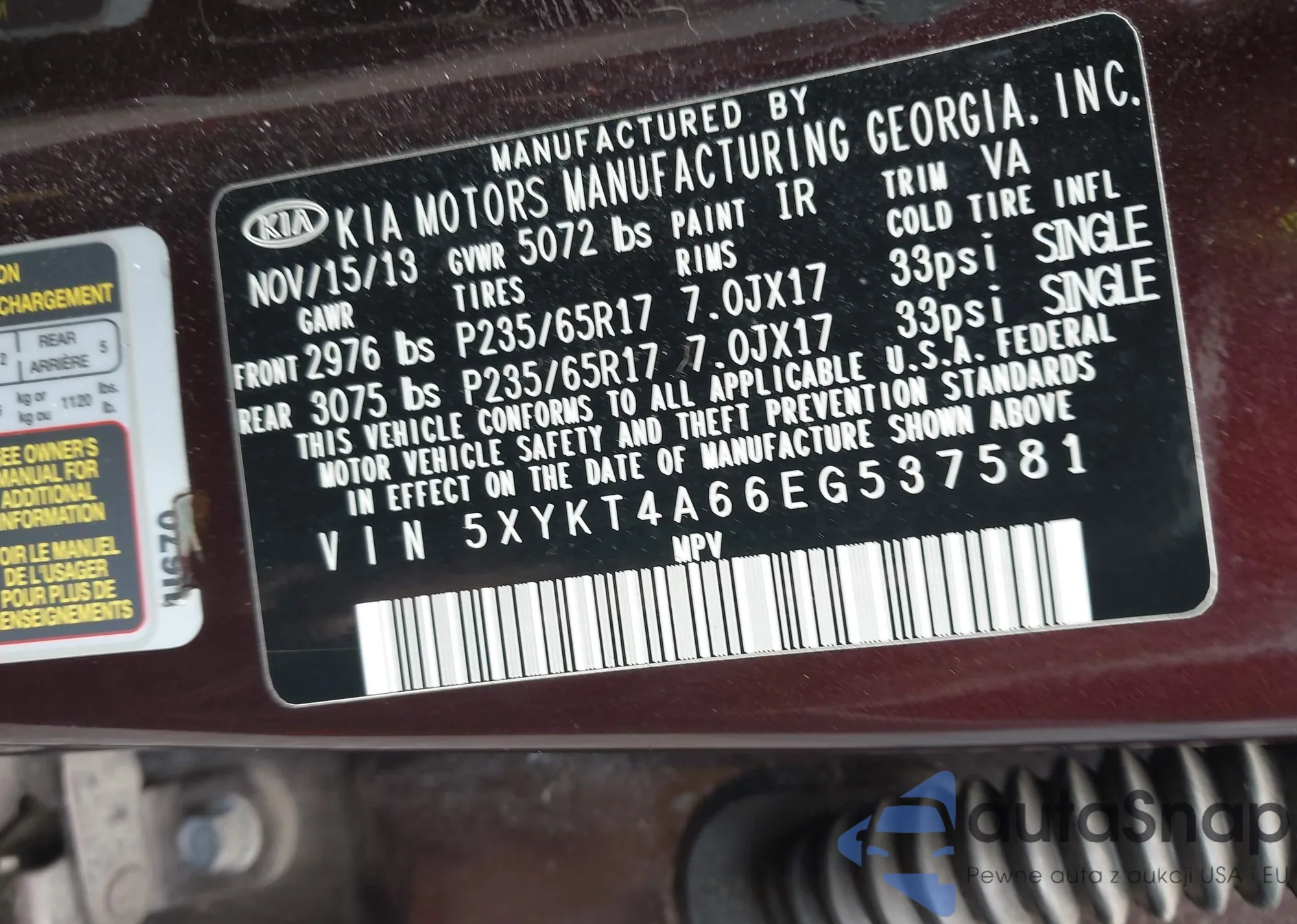 • VIN 5XYKT4A66EG537581