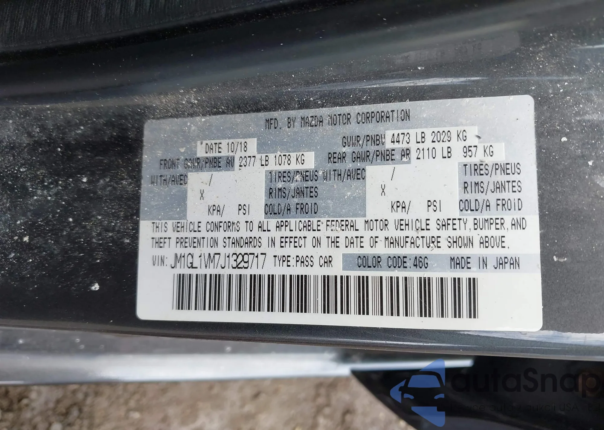 LOT: 42637391 VIN: JM1GL1VM7J1329717