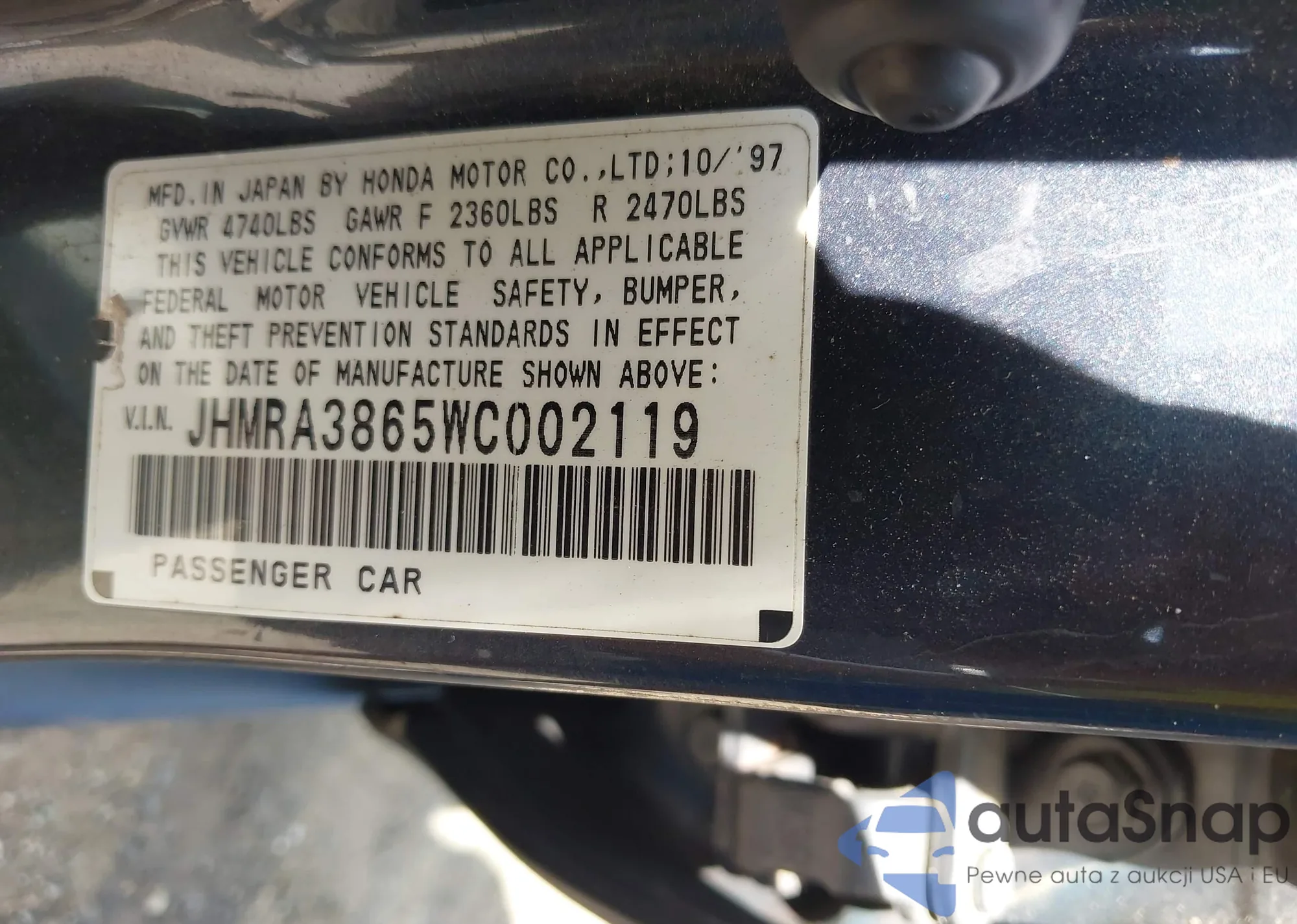 • VIN JHMRA3865WC002119