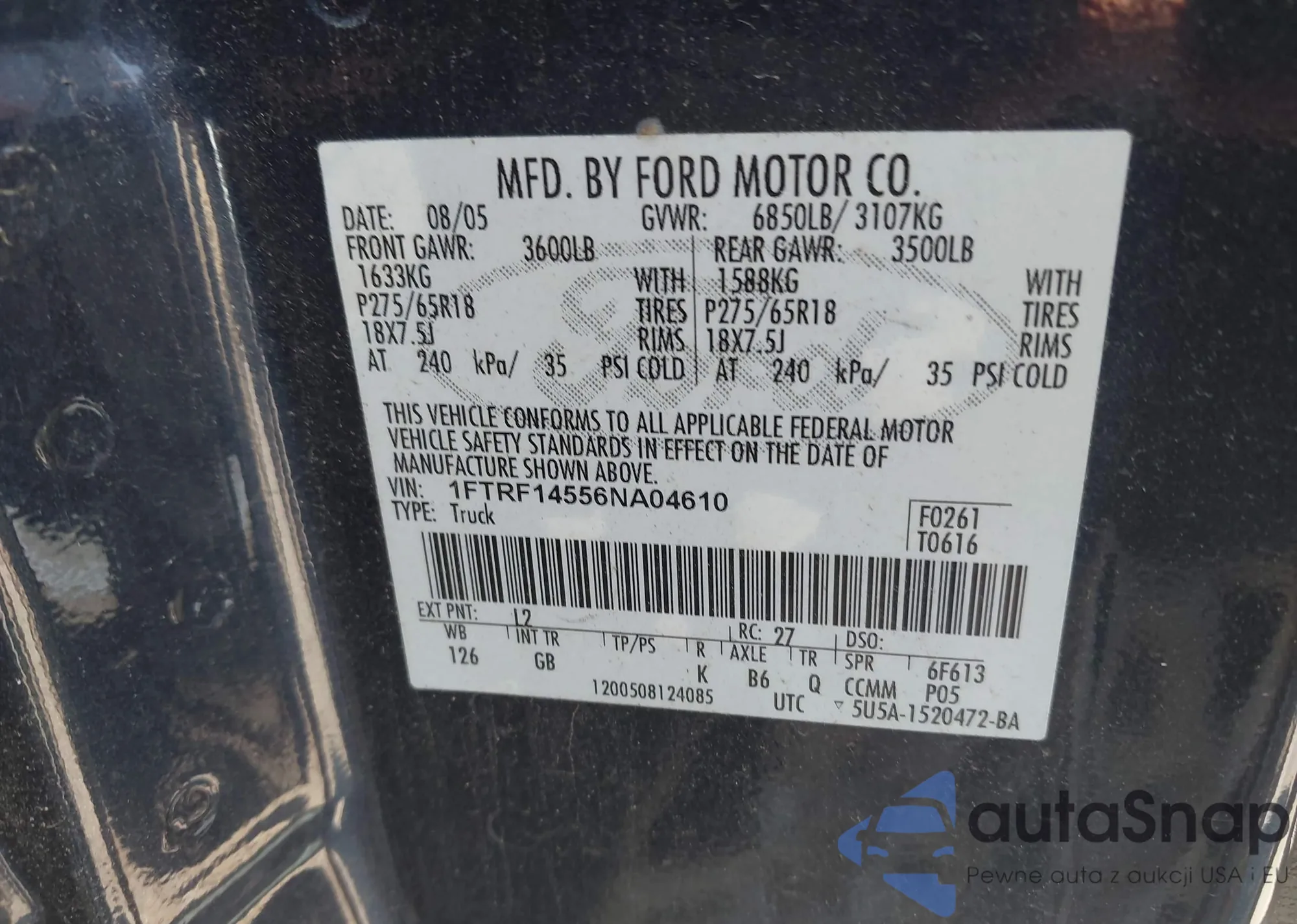 LOT: 42785845 VIN: 1FTRF14556NA04610