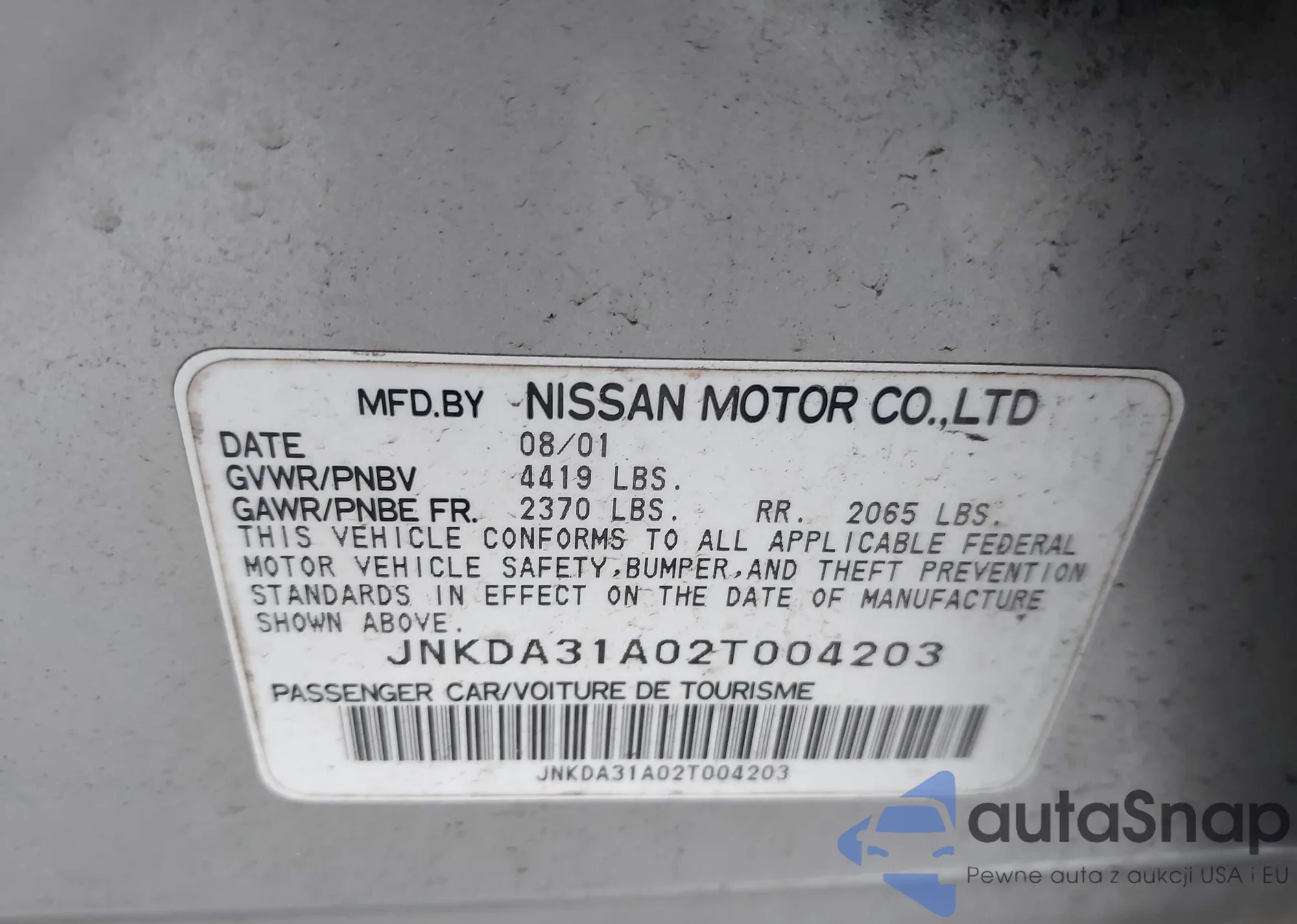 LOT: 42726676 VIN: JHMRA3865WC002119