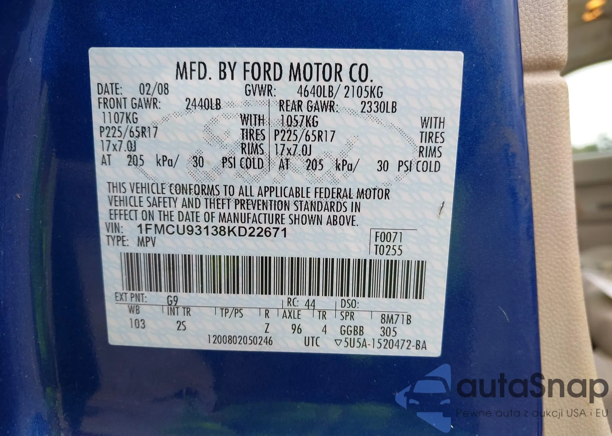 LOT: 42999319 VIN: 1FMCU93138KD22671