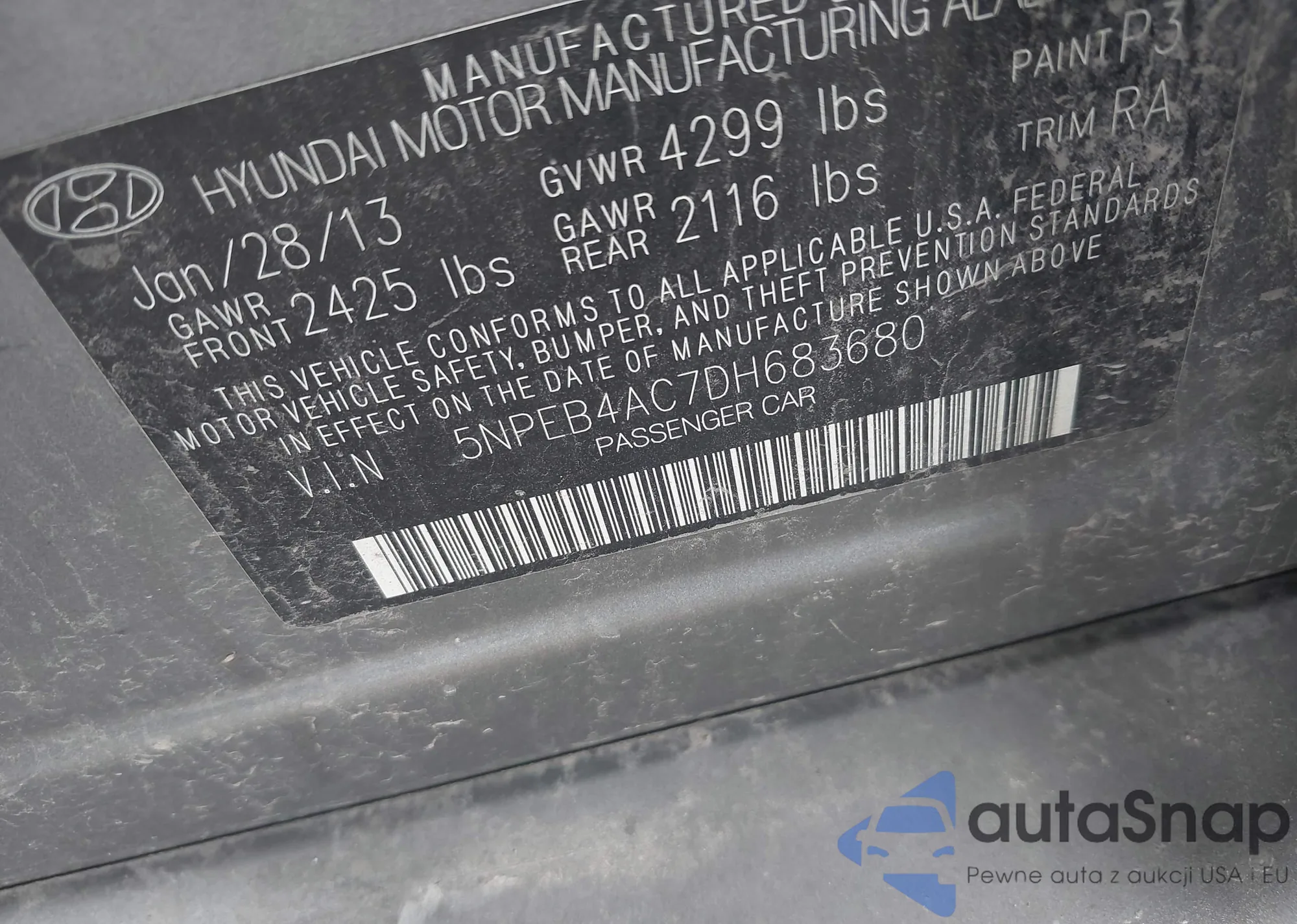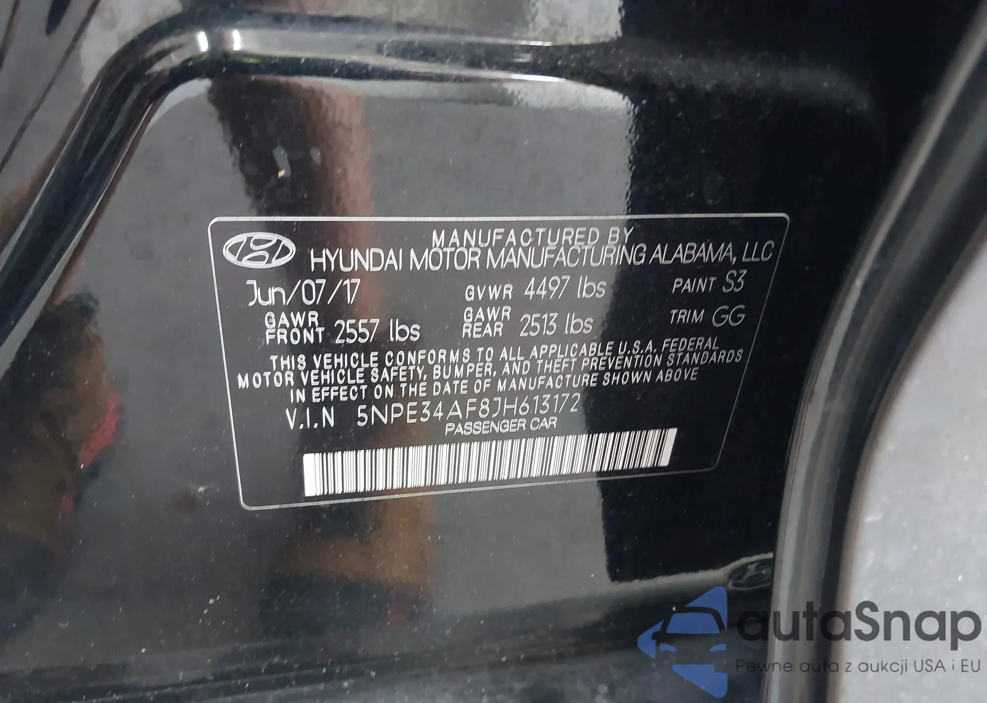 • VIN 5NPE34AF8JH613172