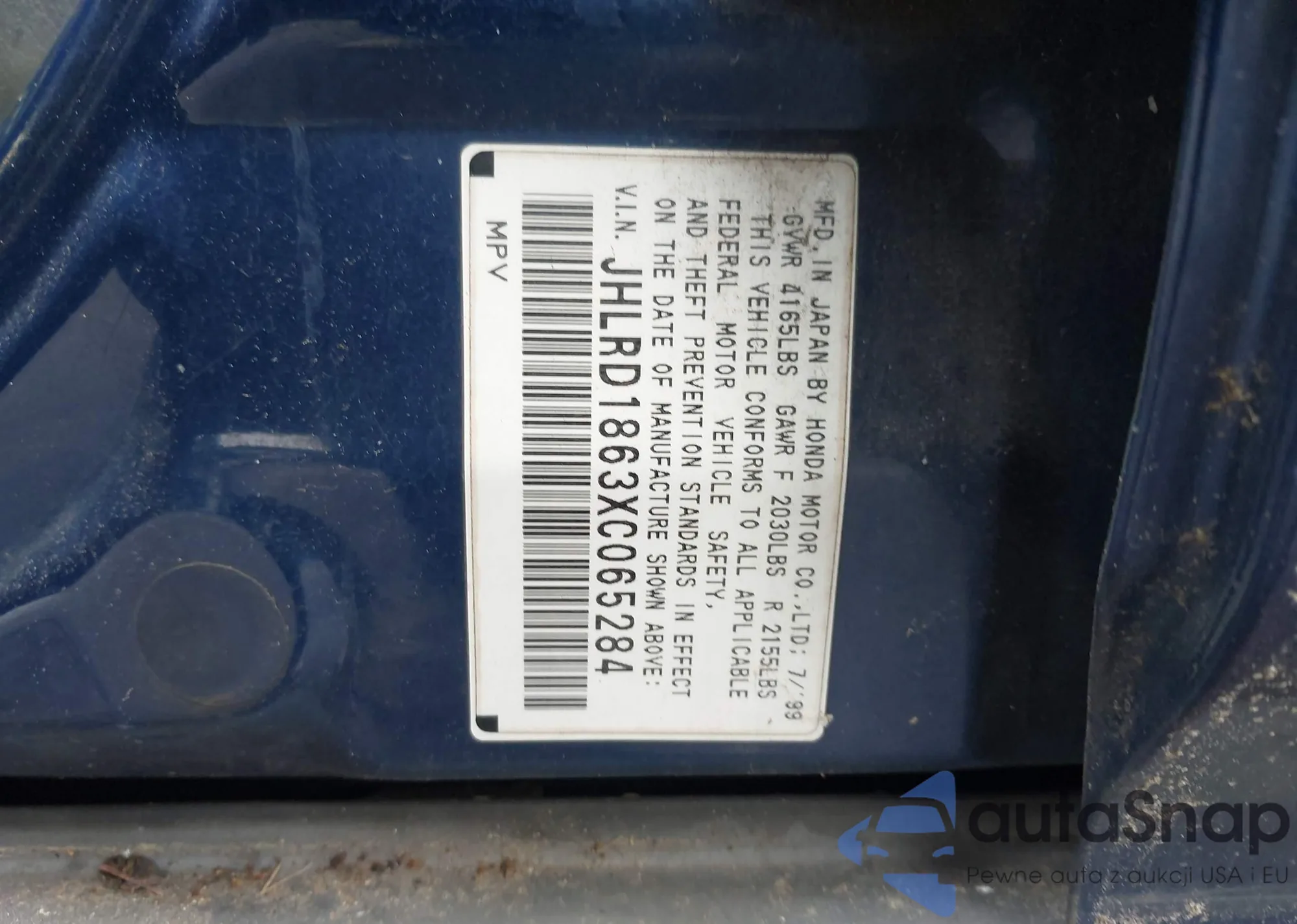 • VIN JHLRD1863XC065284