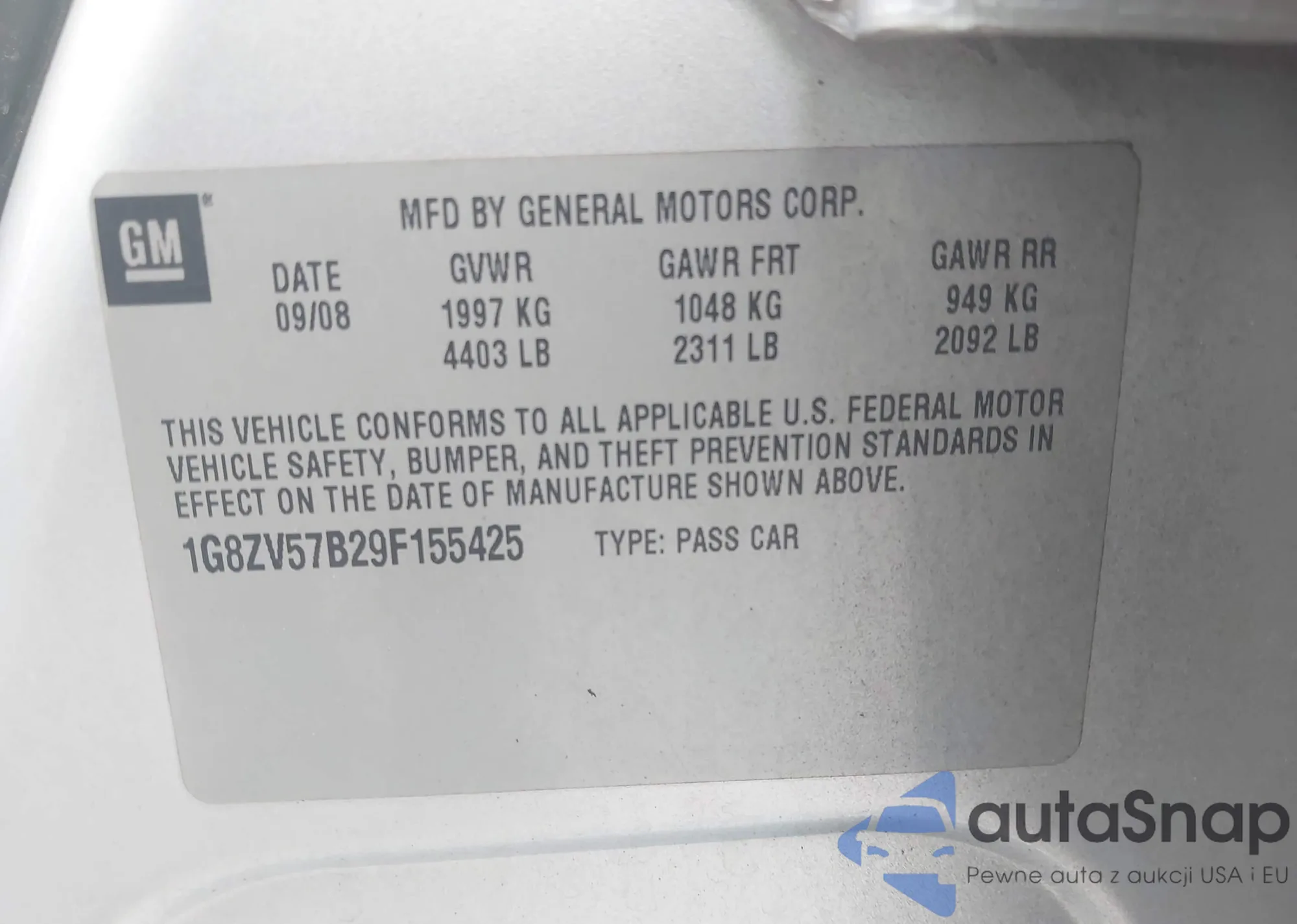 • VIN 1G8ZV57B29F155425