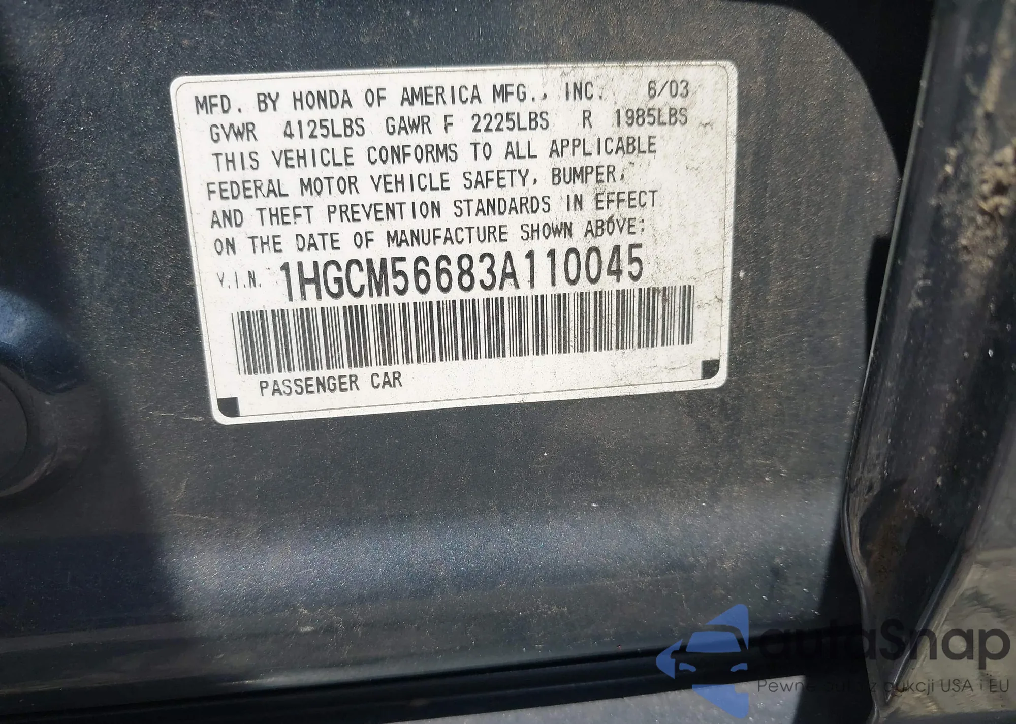 LOT: 42815021 VIN: 1HGCM56683A110045