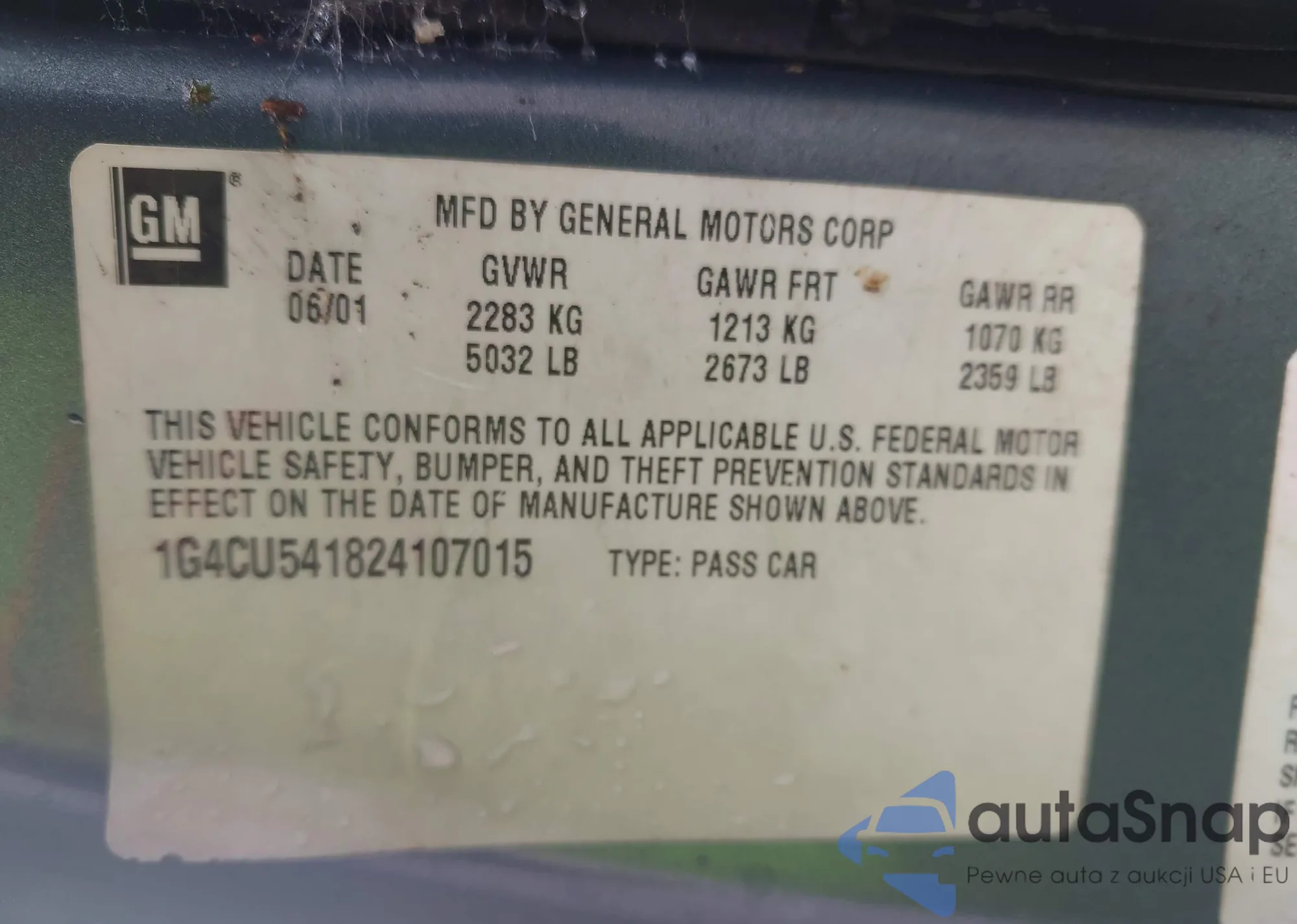 • VIN 1G4CU541824107015