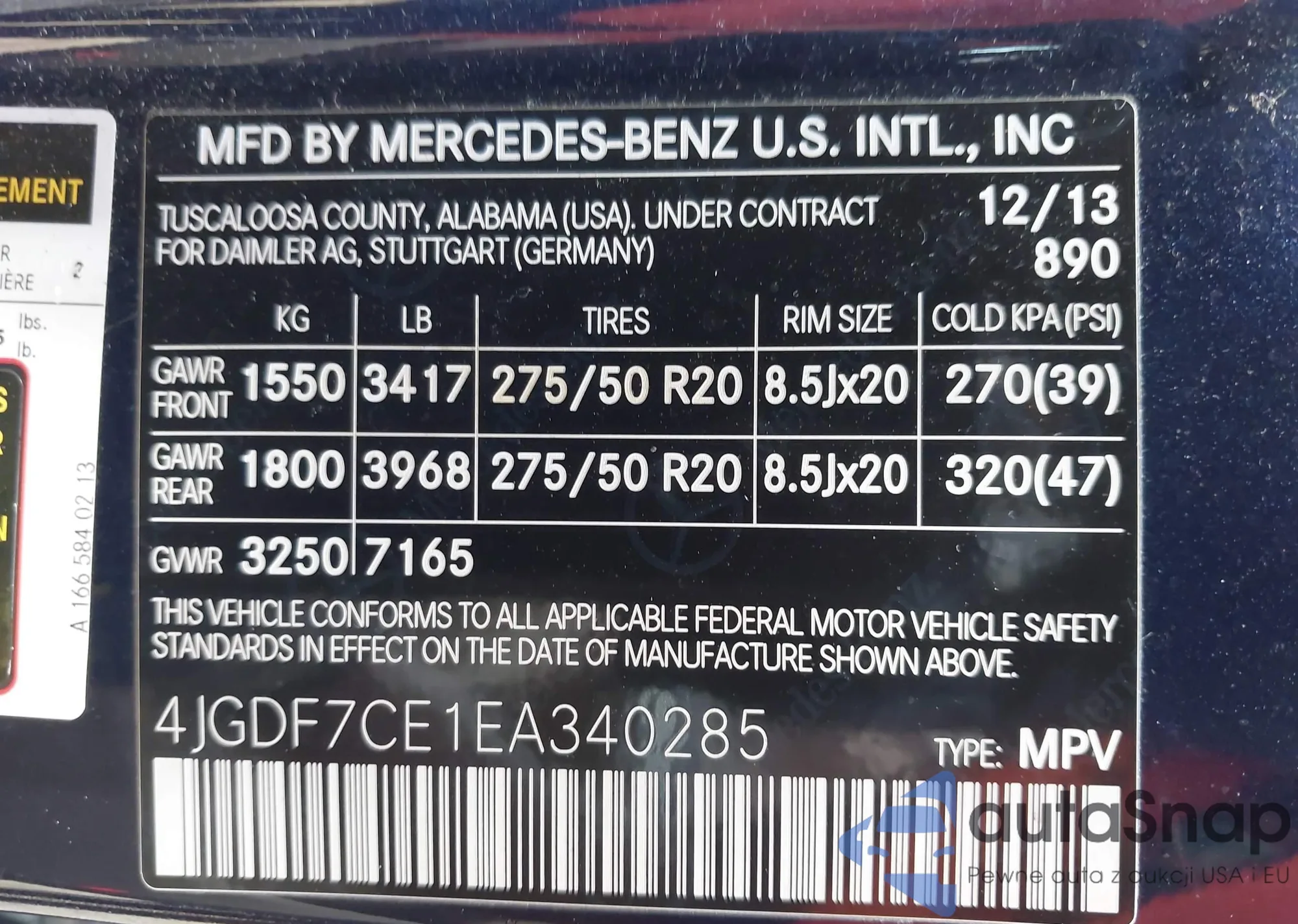 • VIN 4JGDF7CE1EA340285