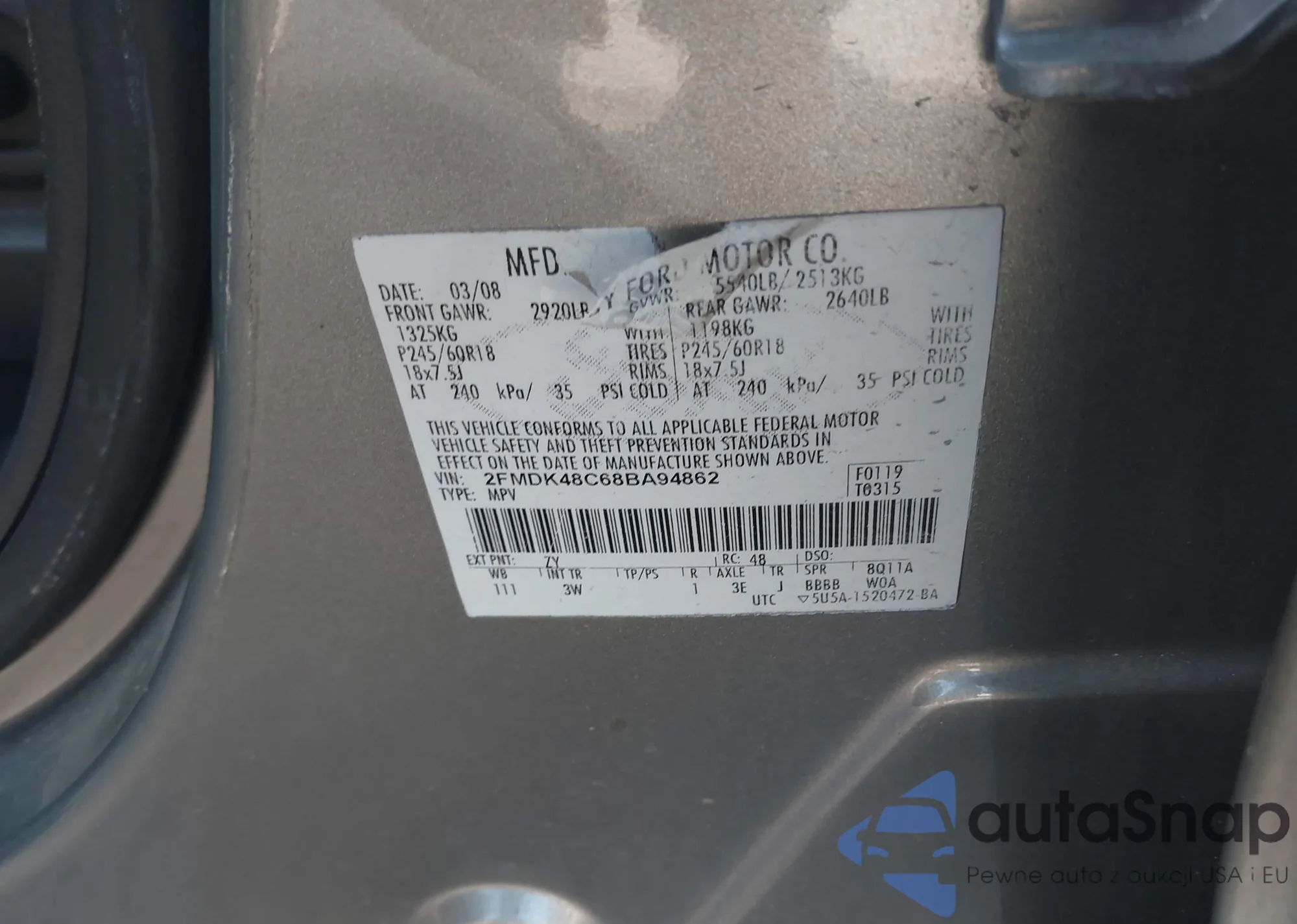 LOT: 42755885 VIN: 2FMDK48C68BA94862