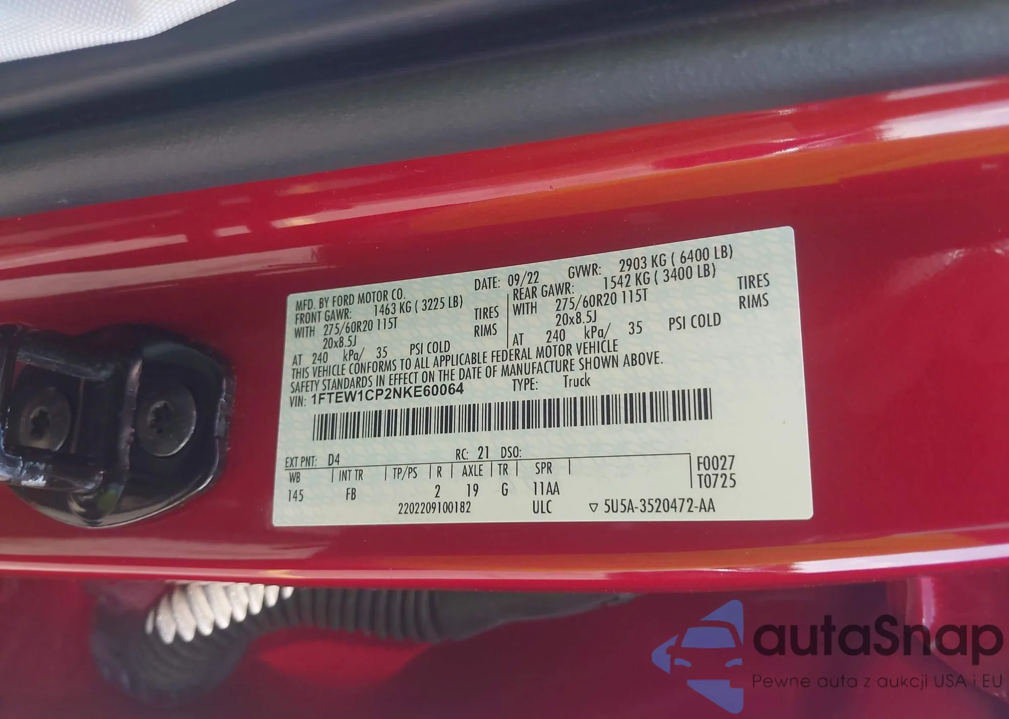 LOT: 42705914 VIN: 1FTEW1CP2NKE60064