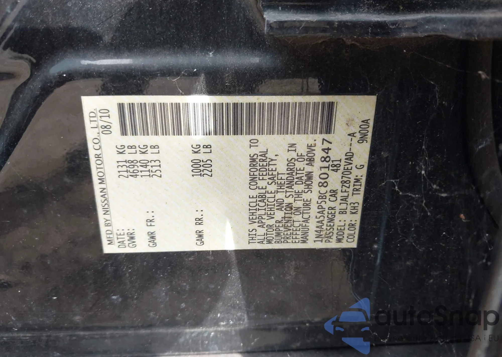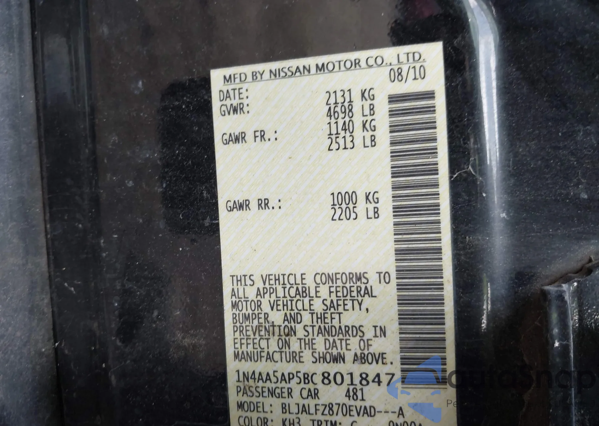 • VIN 1N4AA5AP5BC801847