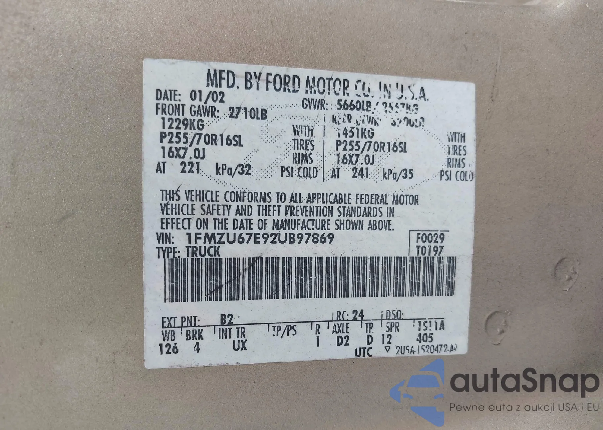 • VIN 1FMZU67E92UB97869