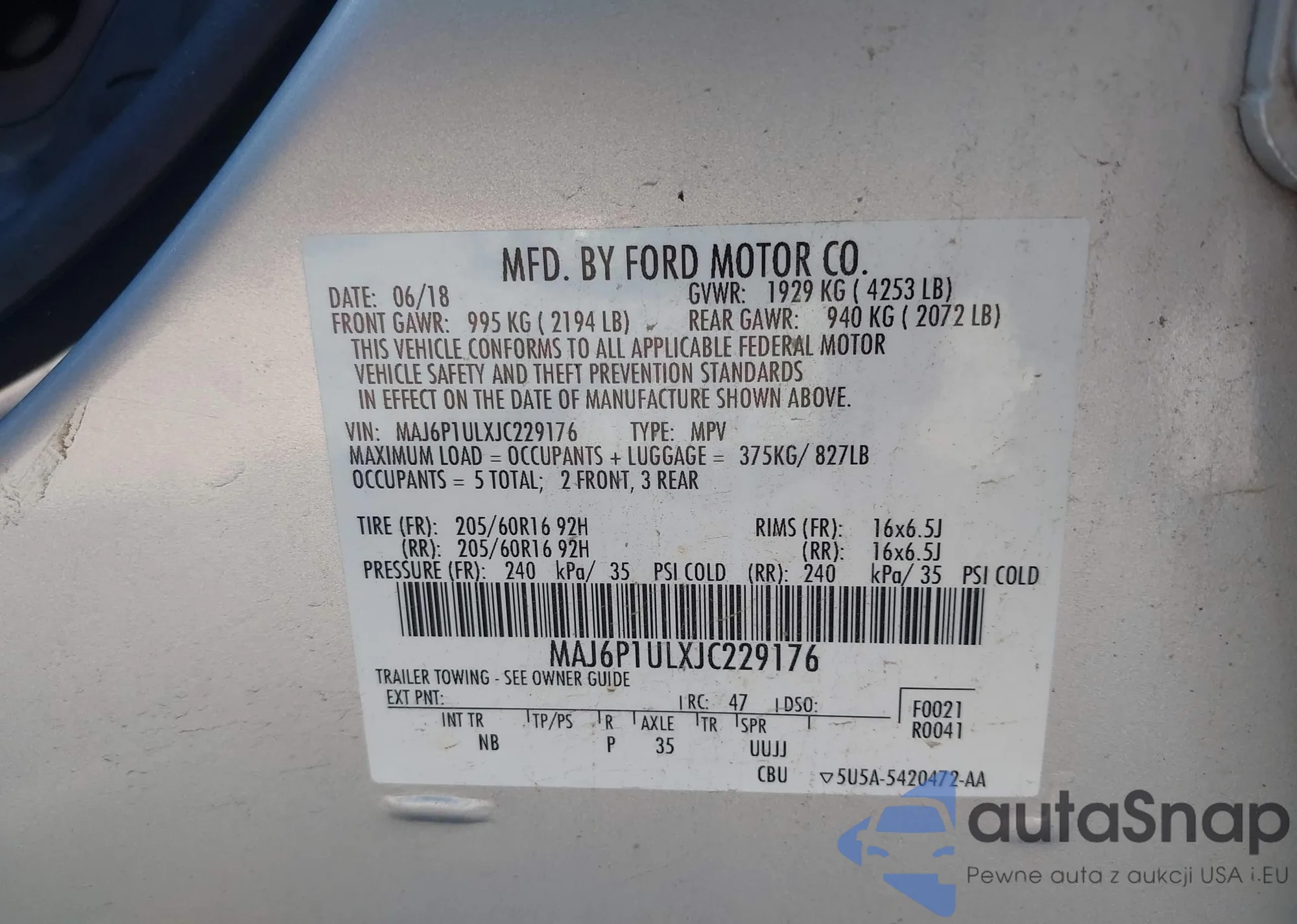 • VIN MAJ6P1ULXJC229176