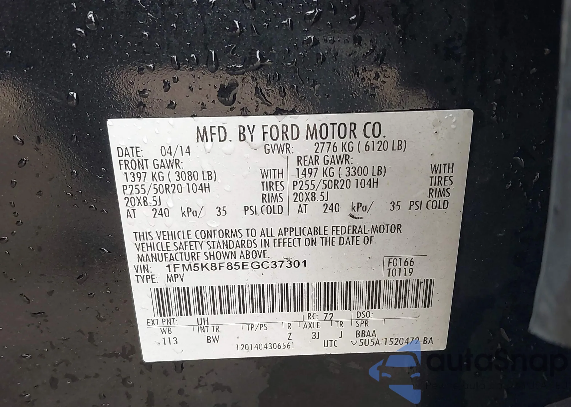 • VIN 2FMTK3J85FBB98896