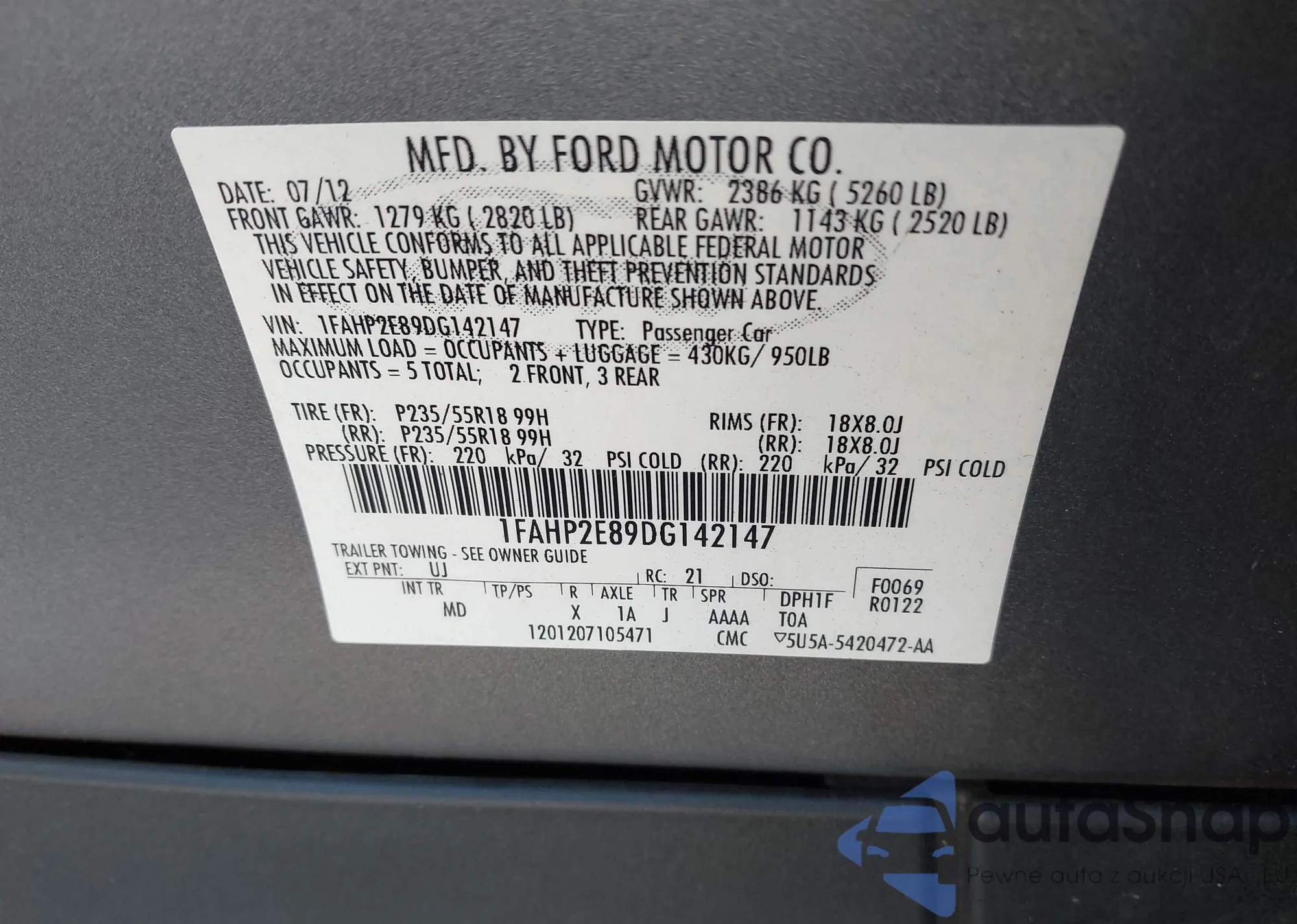 • VIN 3FADP4BJ2DM131790