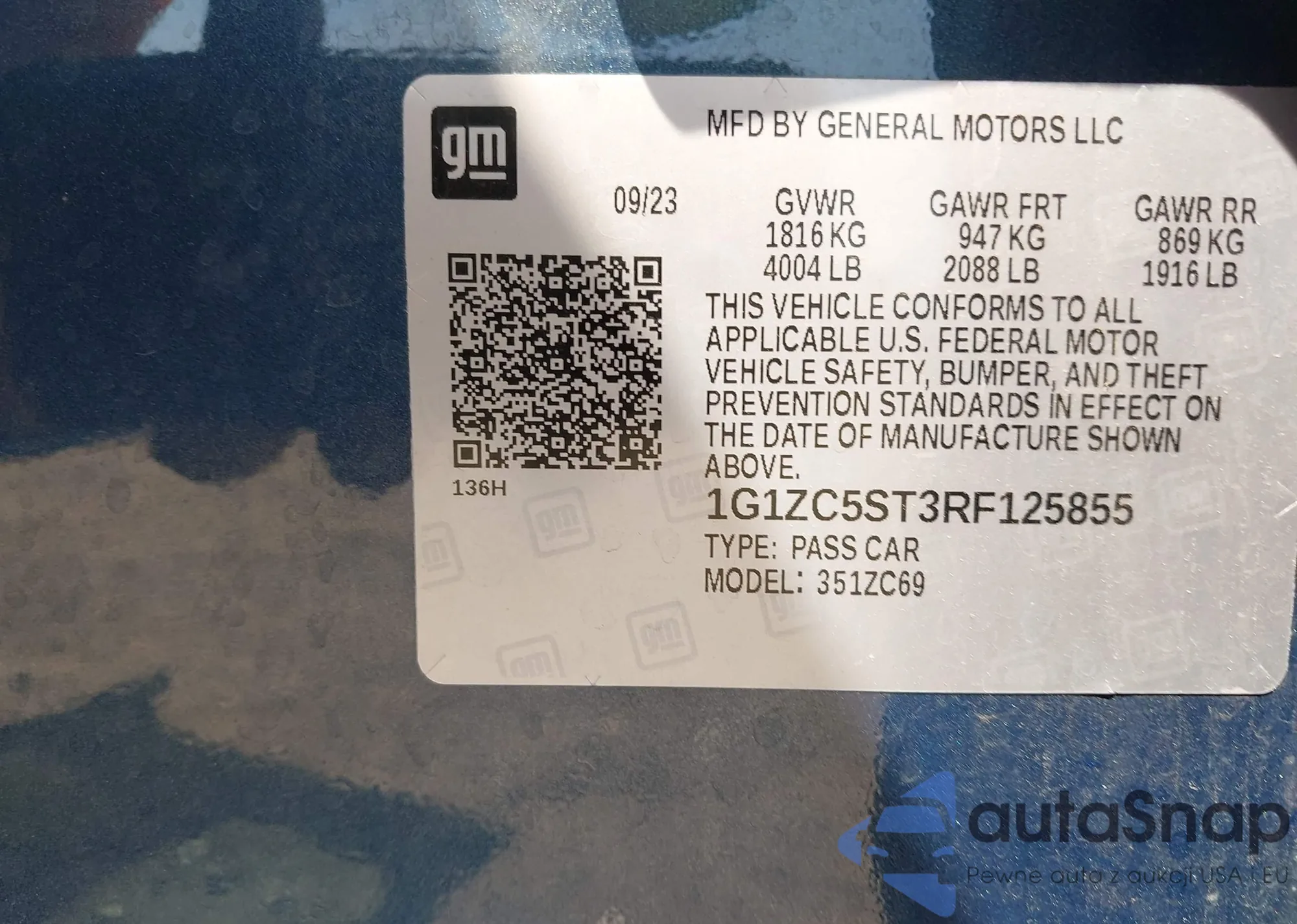 LOT: 42115636 VIN: 1HGCP2F49AA184074