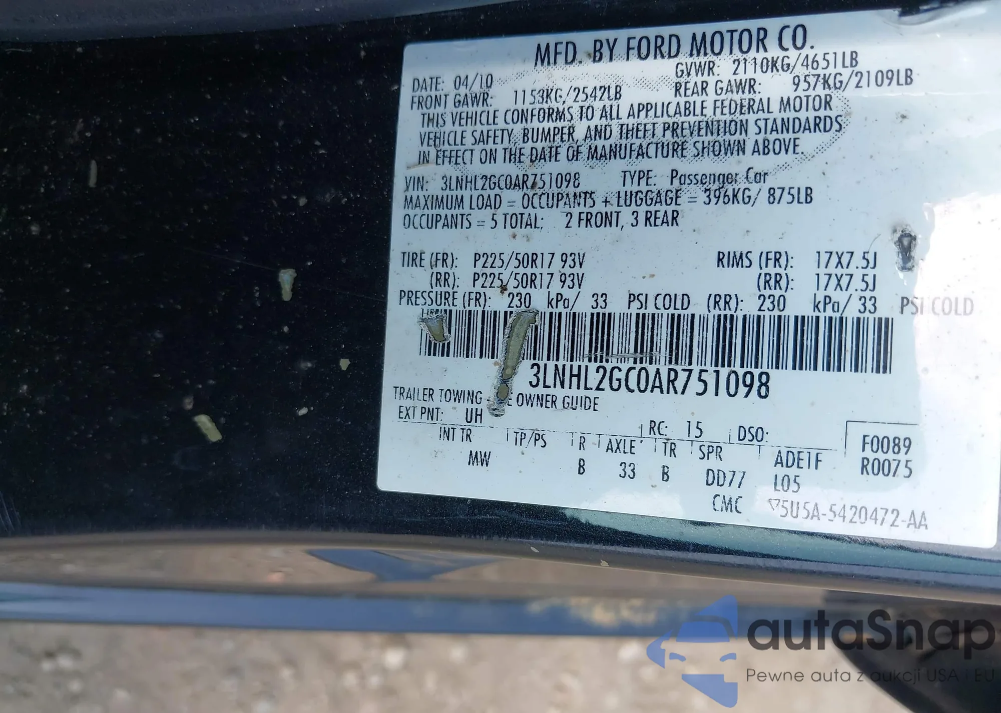 LOT: 42947228 VIN: 3LNHL2GC0AR751098