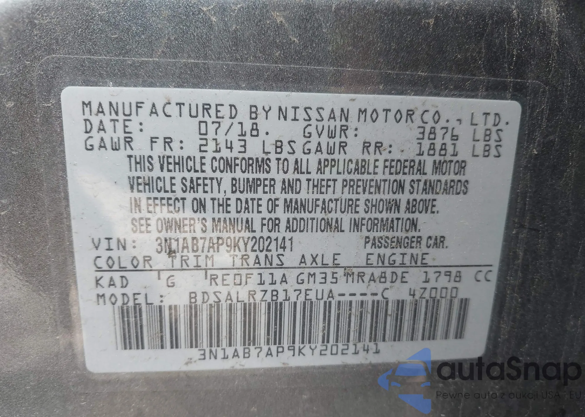 • VIN 3N1AB7AP9KY202141