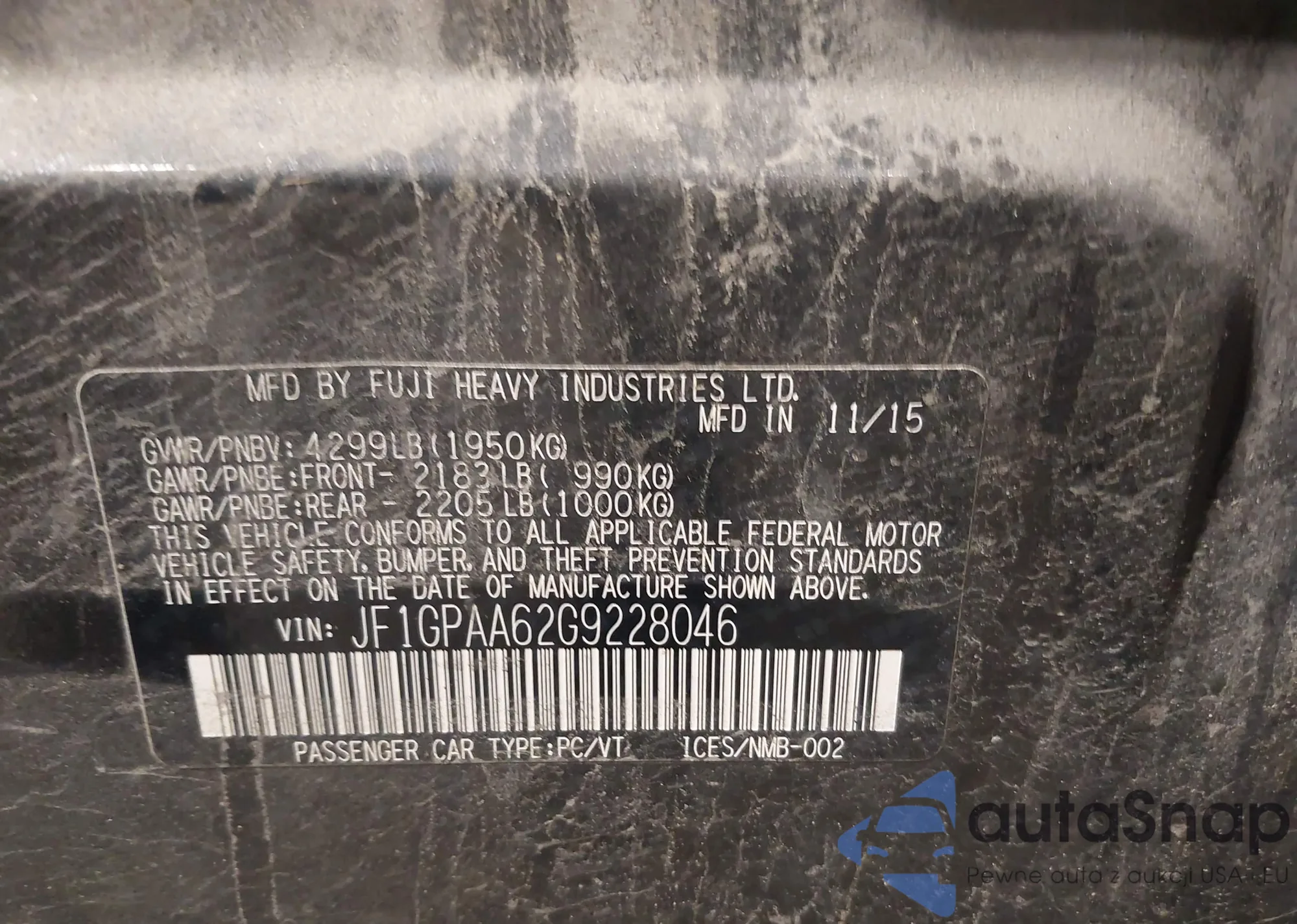 • VIN JF2SJADC3FH442783
