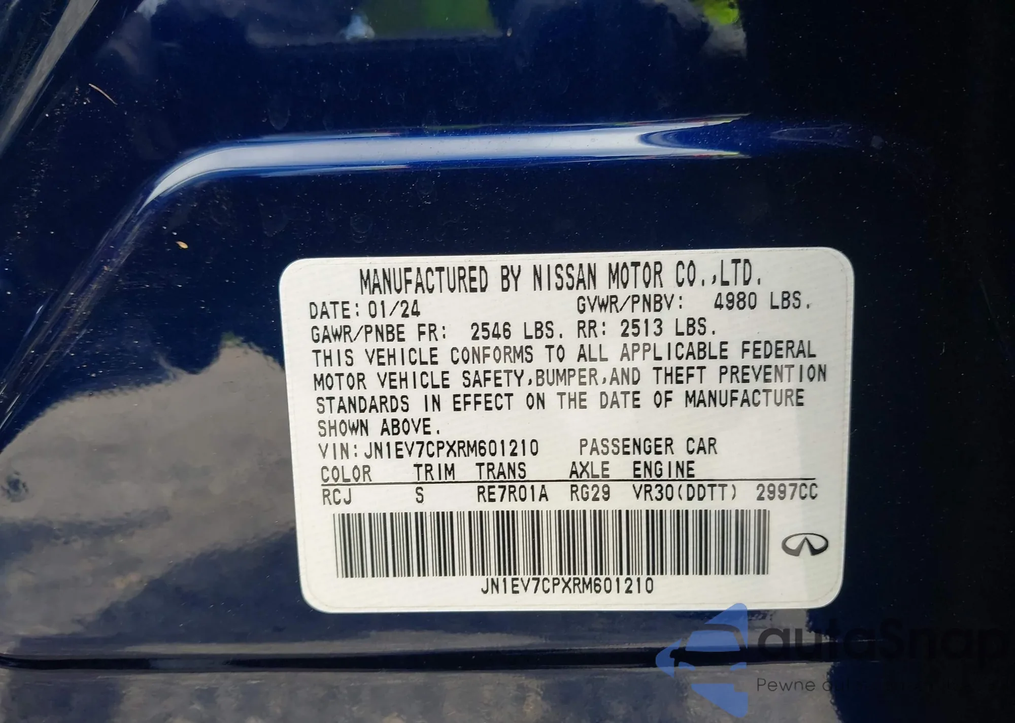 LOT: 42698058 VIN: JN1EV7CPXRM601210