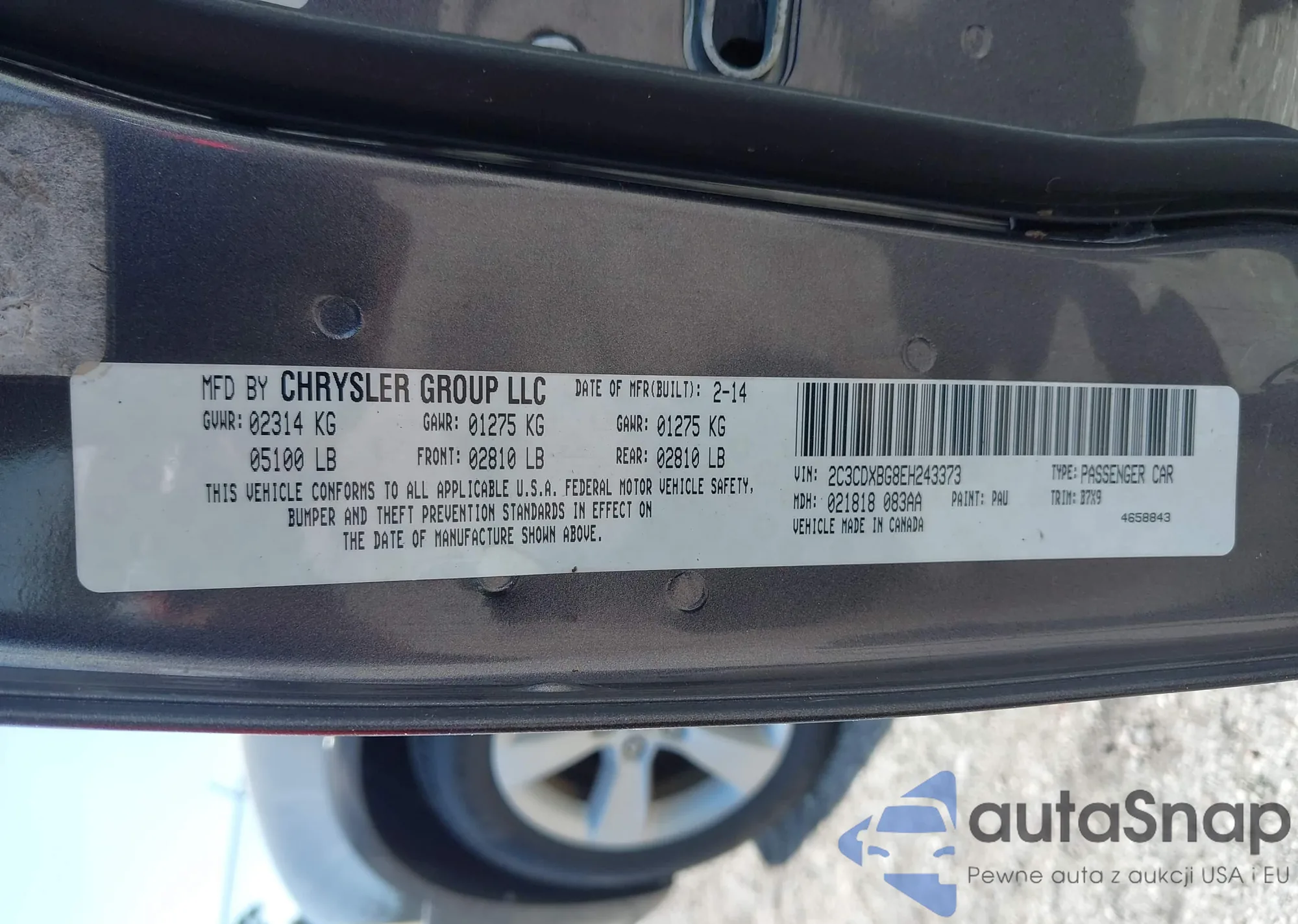 LOT: 42909246 VIN: 2C3CDXBG8EH243373