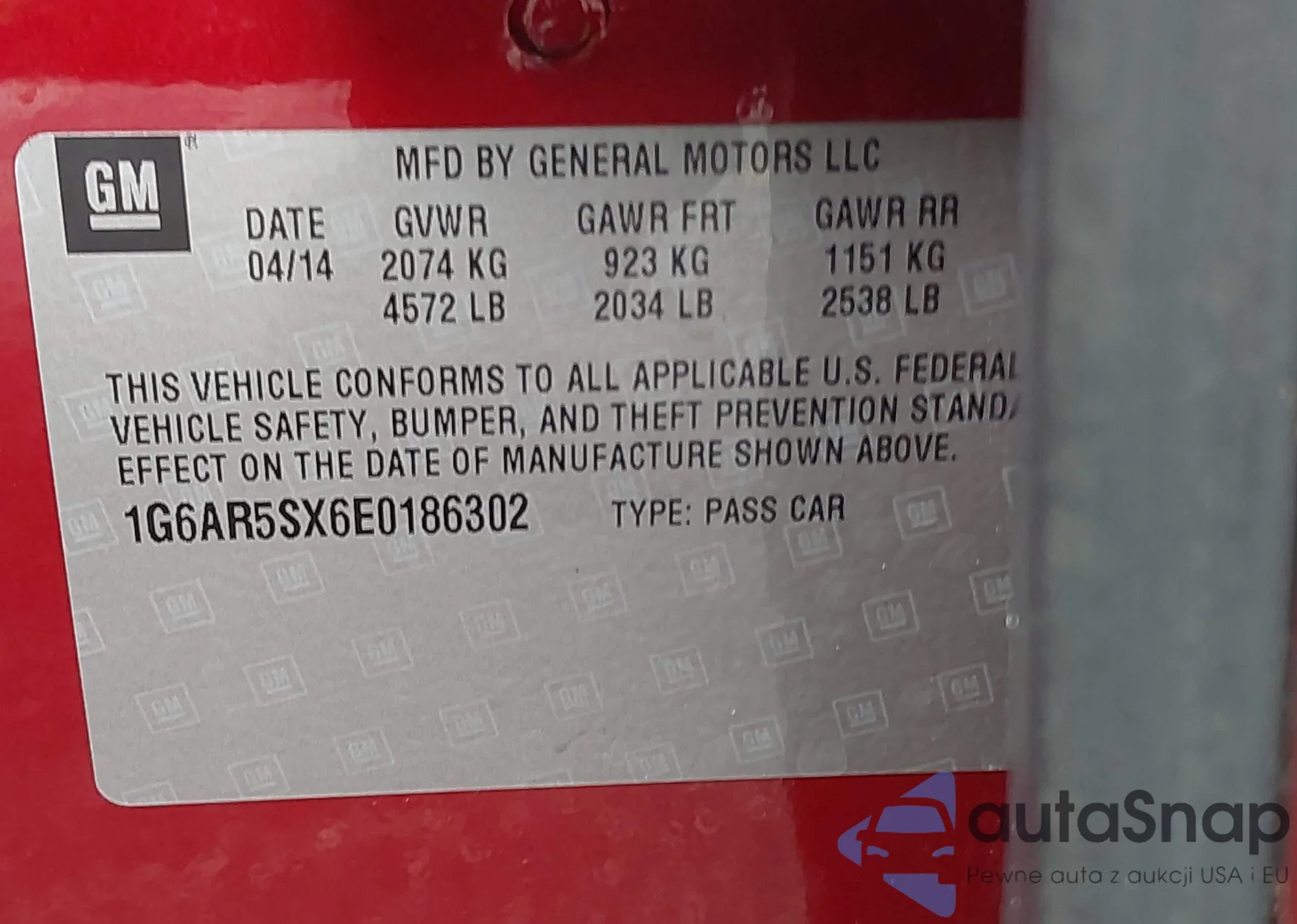 • VIN 1G6AR5SX6E0186302