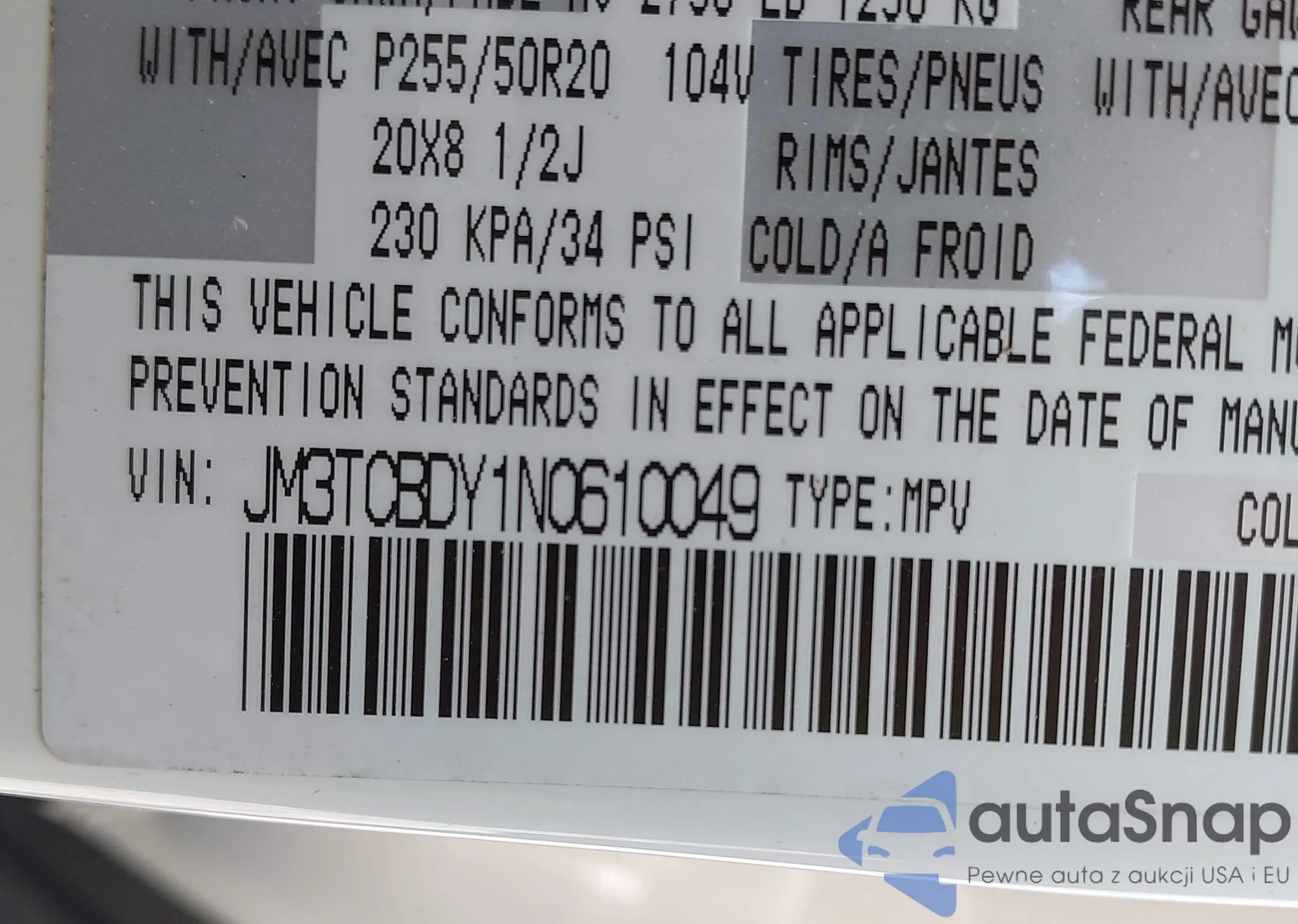• VIN JM3TCBDY1N0610049