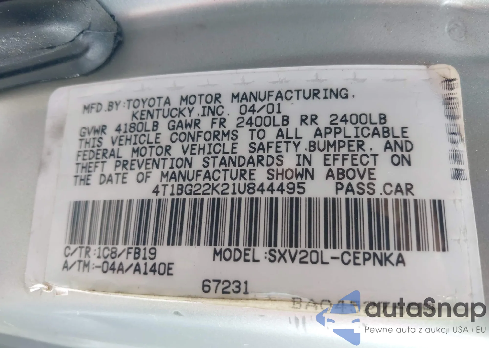 • VIN 4T1BF30KX3U543276