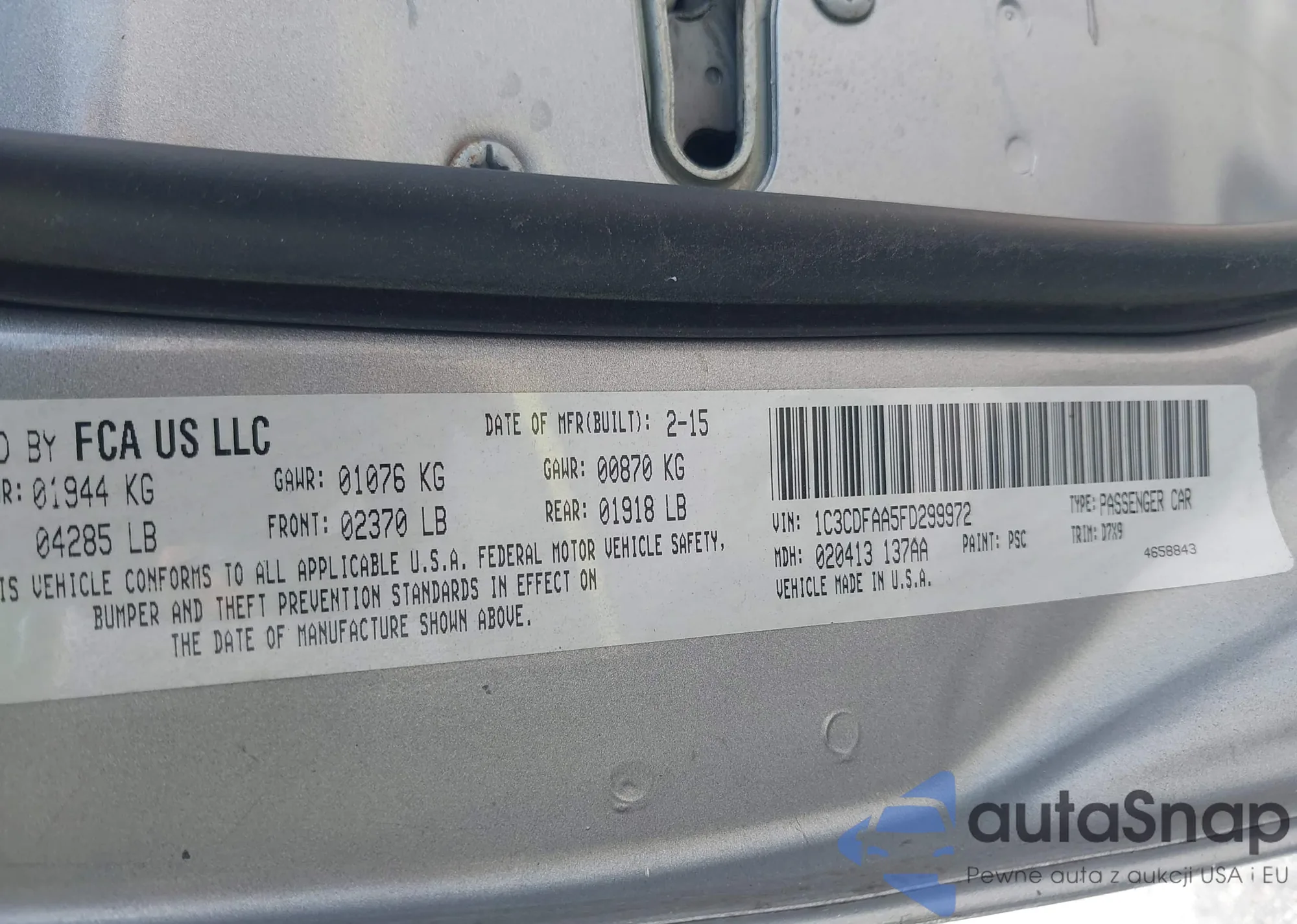 LOT: 42809948 VIN: 1C3CDFAA5FD299972