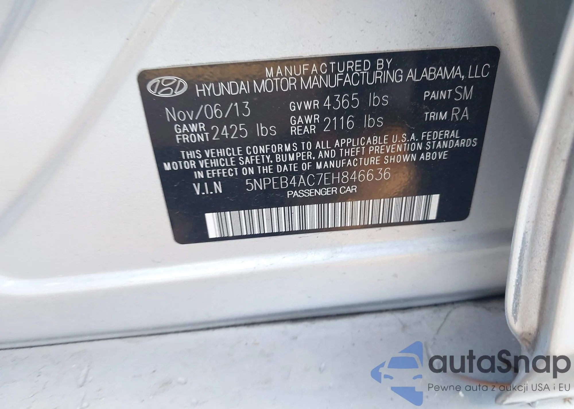 • VIN 5NPEB4AC7EH846636