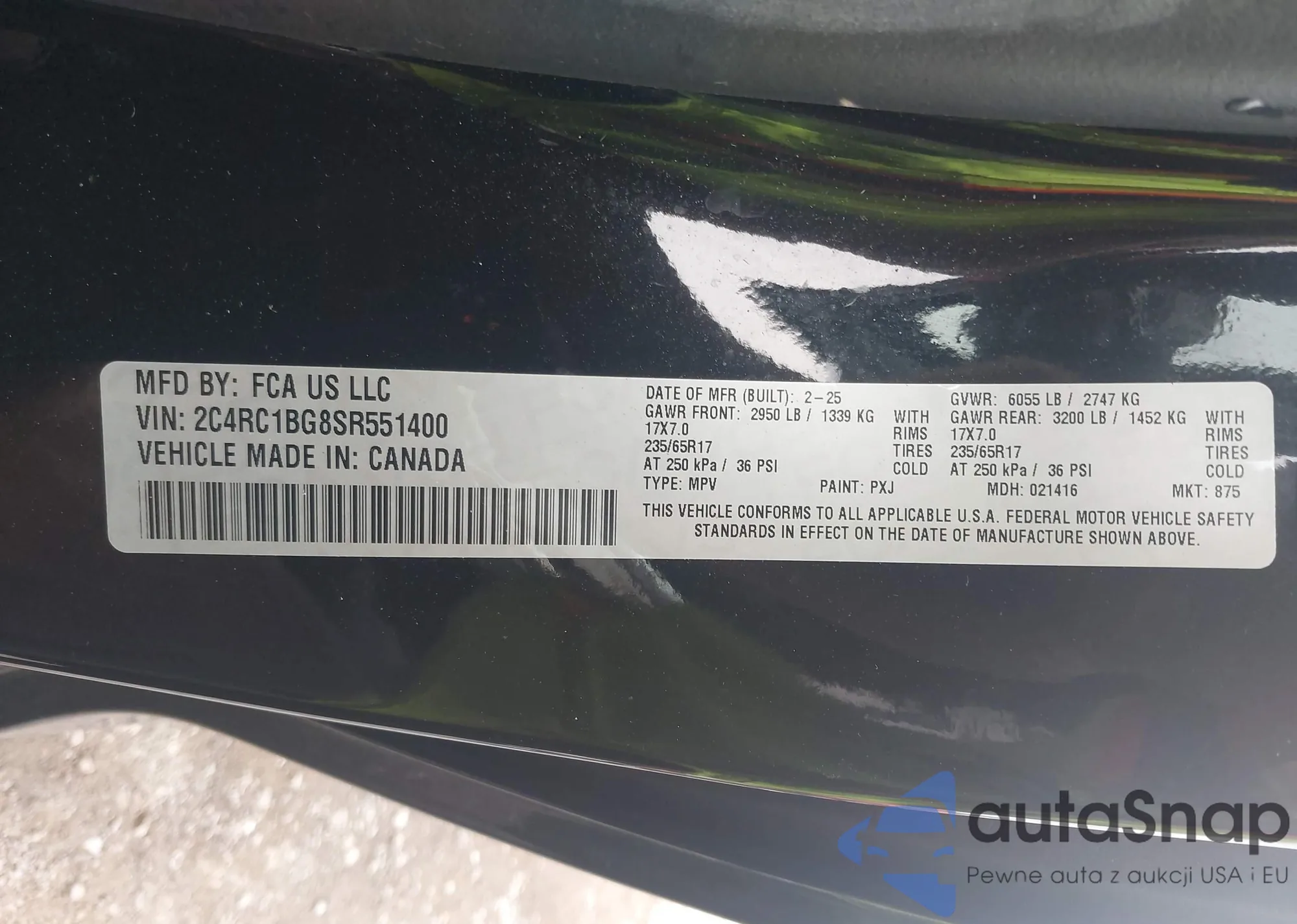 • VIN 2C4RC1BG8SR551400