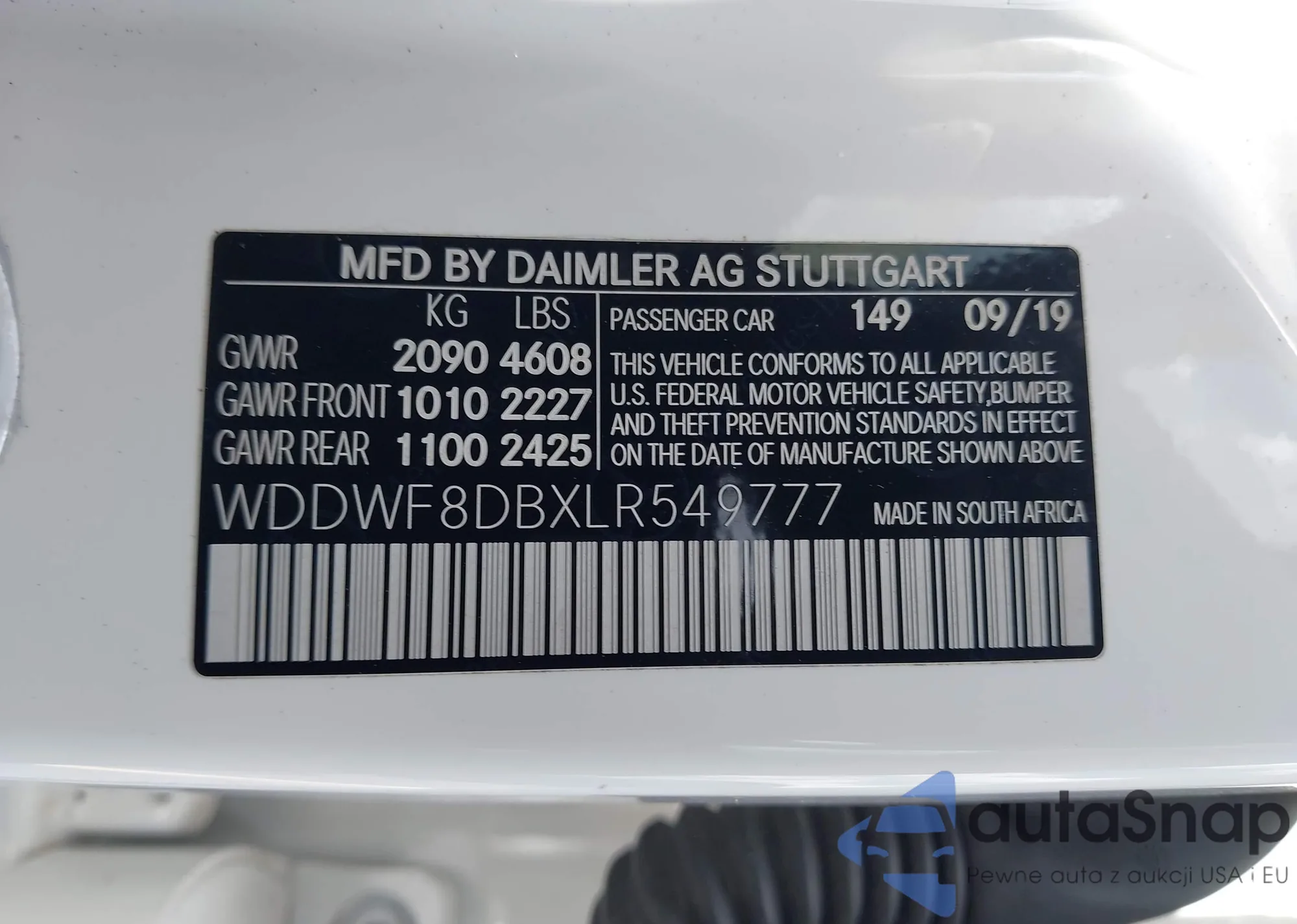 • VIN WDDWF8DBXLR549777