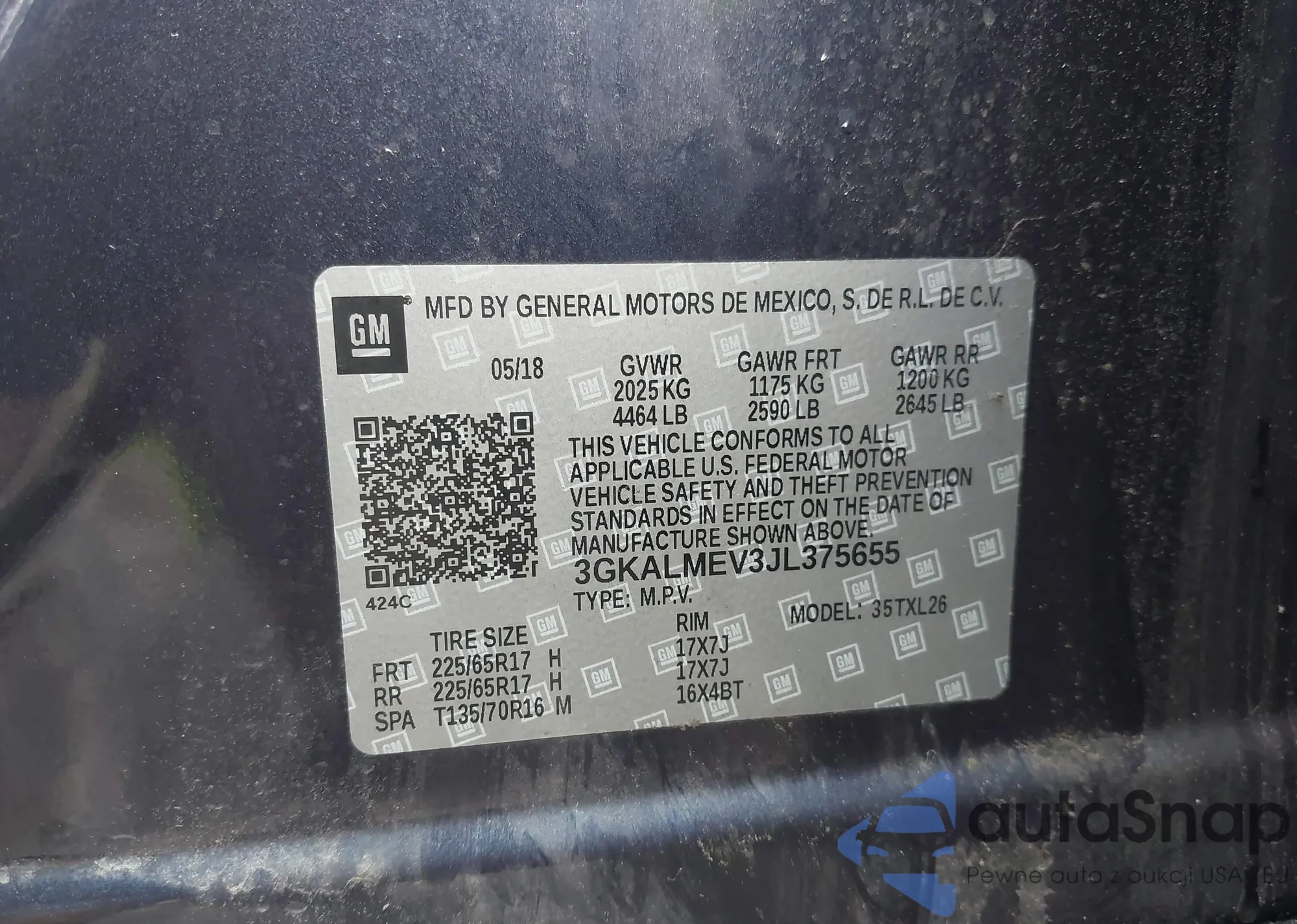 LOT: 43006550 VIN: 3GKALMEV3JL375655