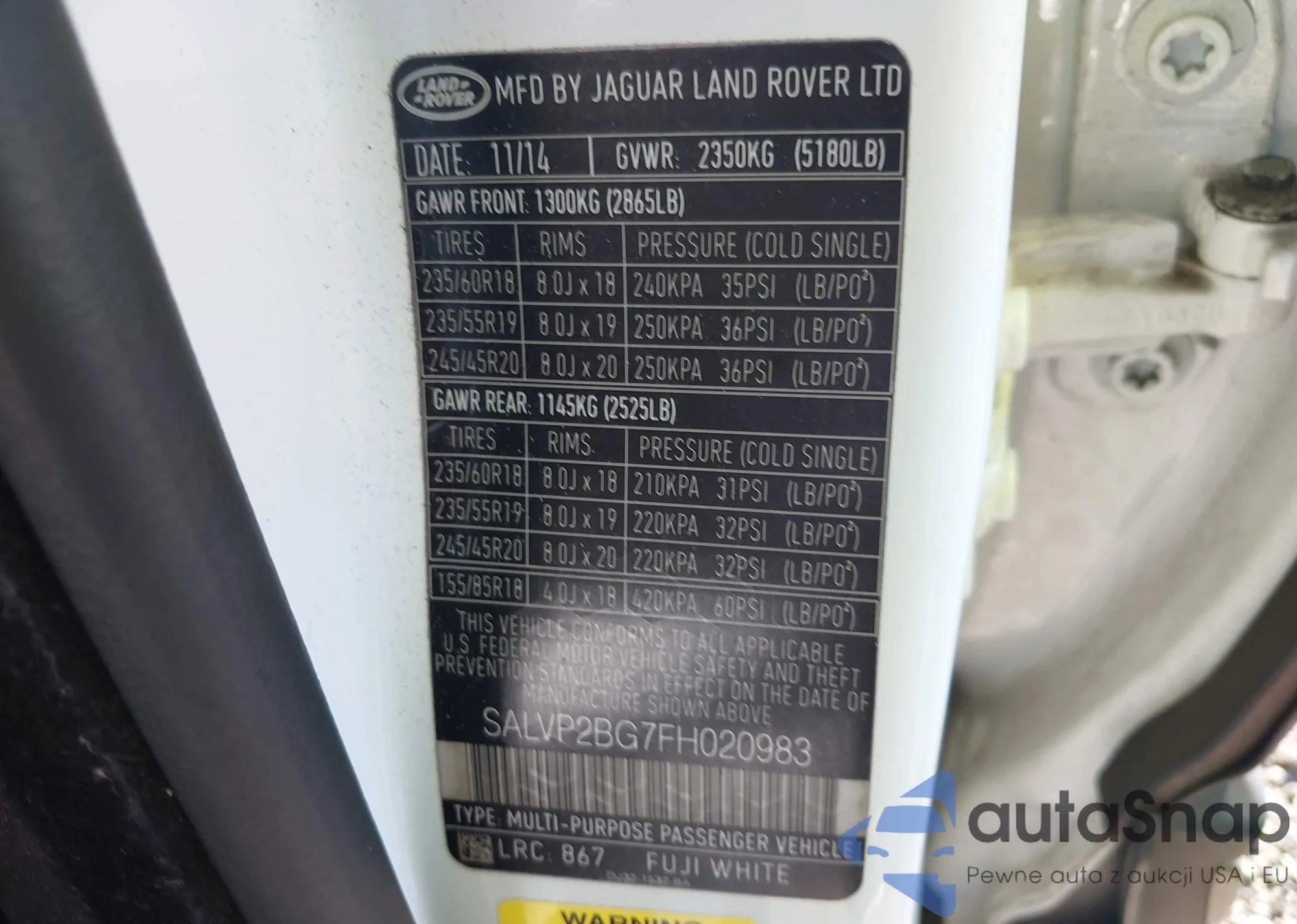 • VIN SALVP2BG7FH020983