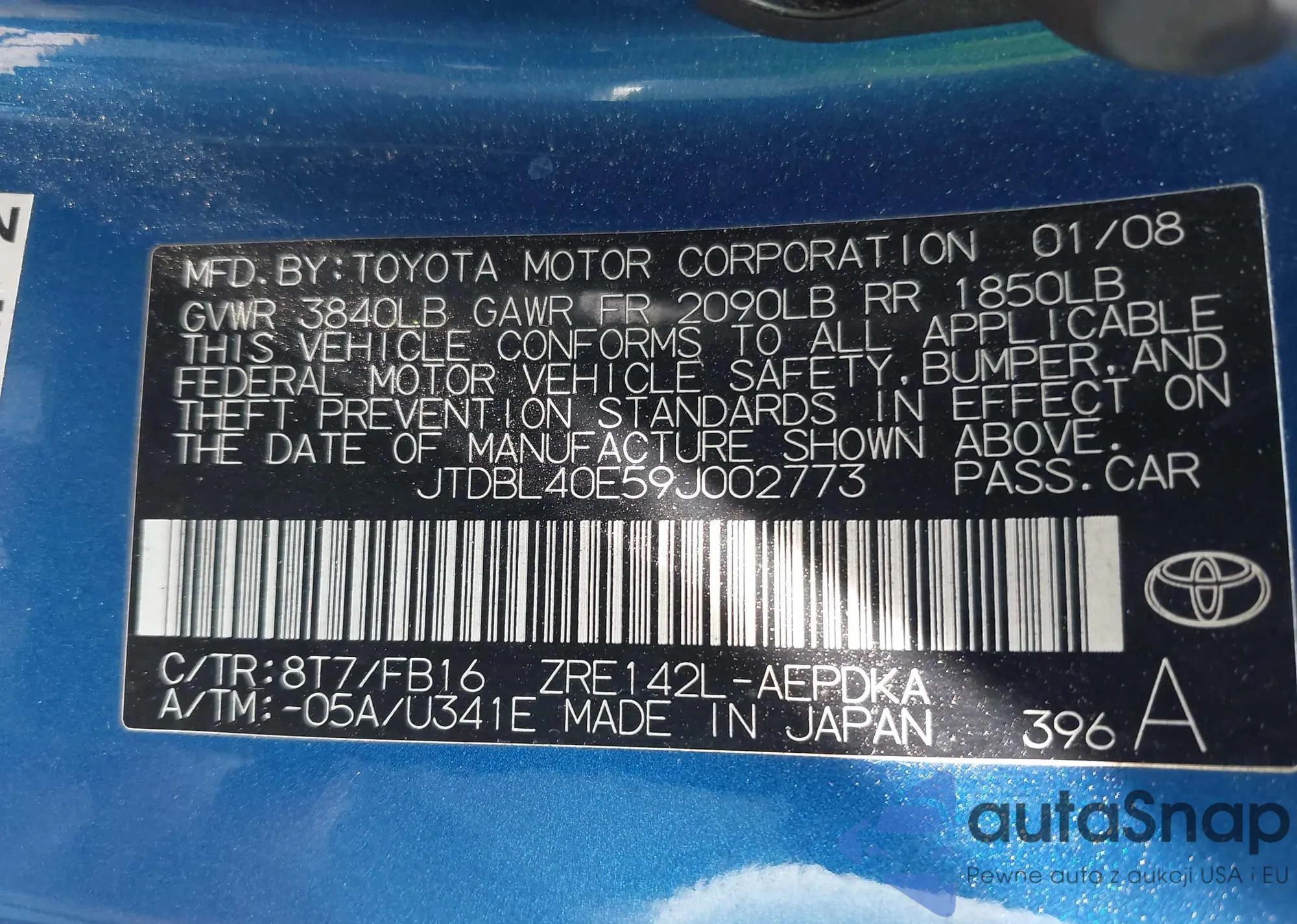 LOT: 42869279 VIN: JTDBL40E59J002773