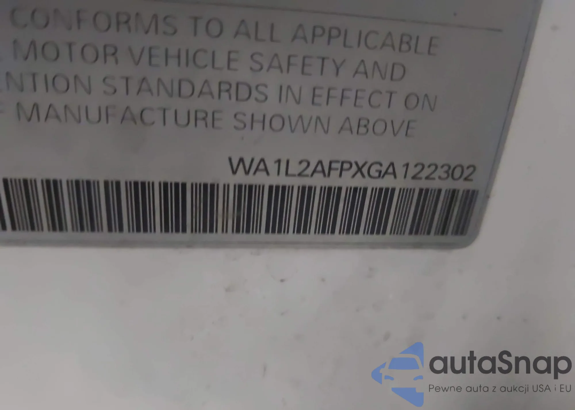 LOT: 42885233 VIN: WA1L2AFPXGA122302