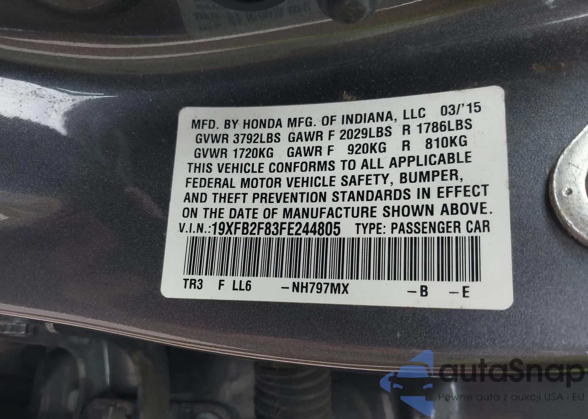 LOT: 42889551 VIN: 19XFB2F83FE244805