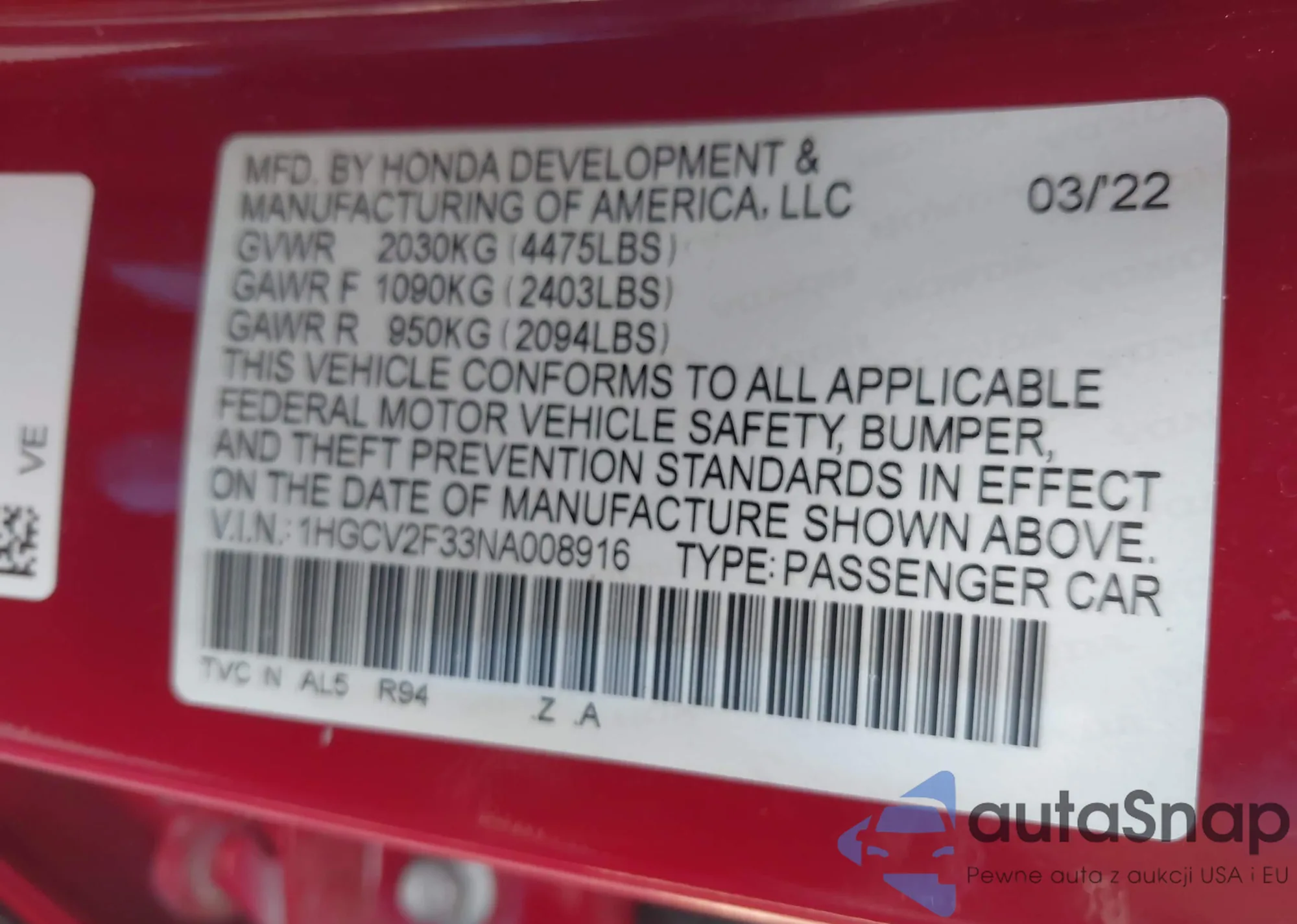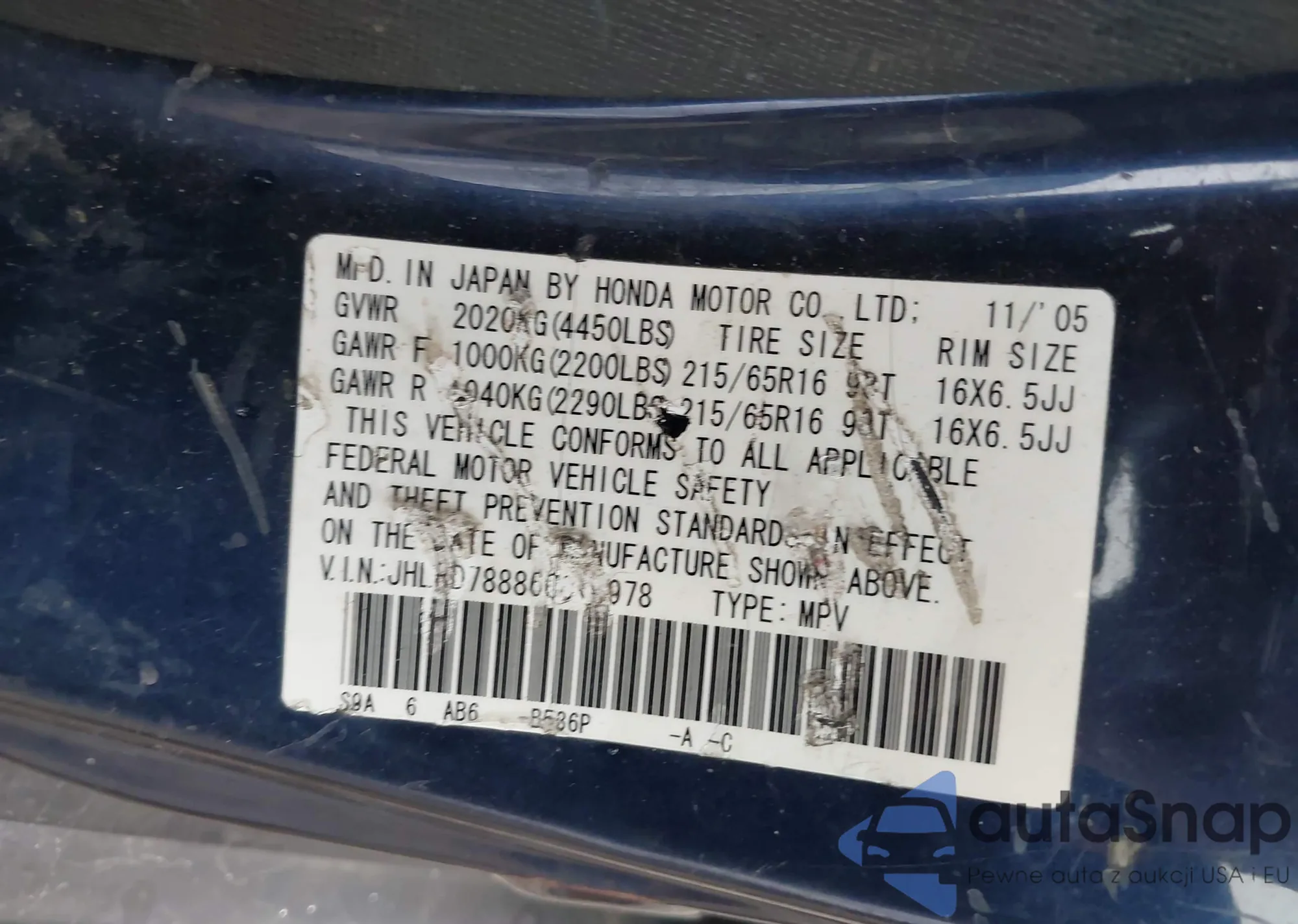 • VIN JHLRD78886C014978