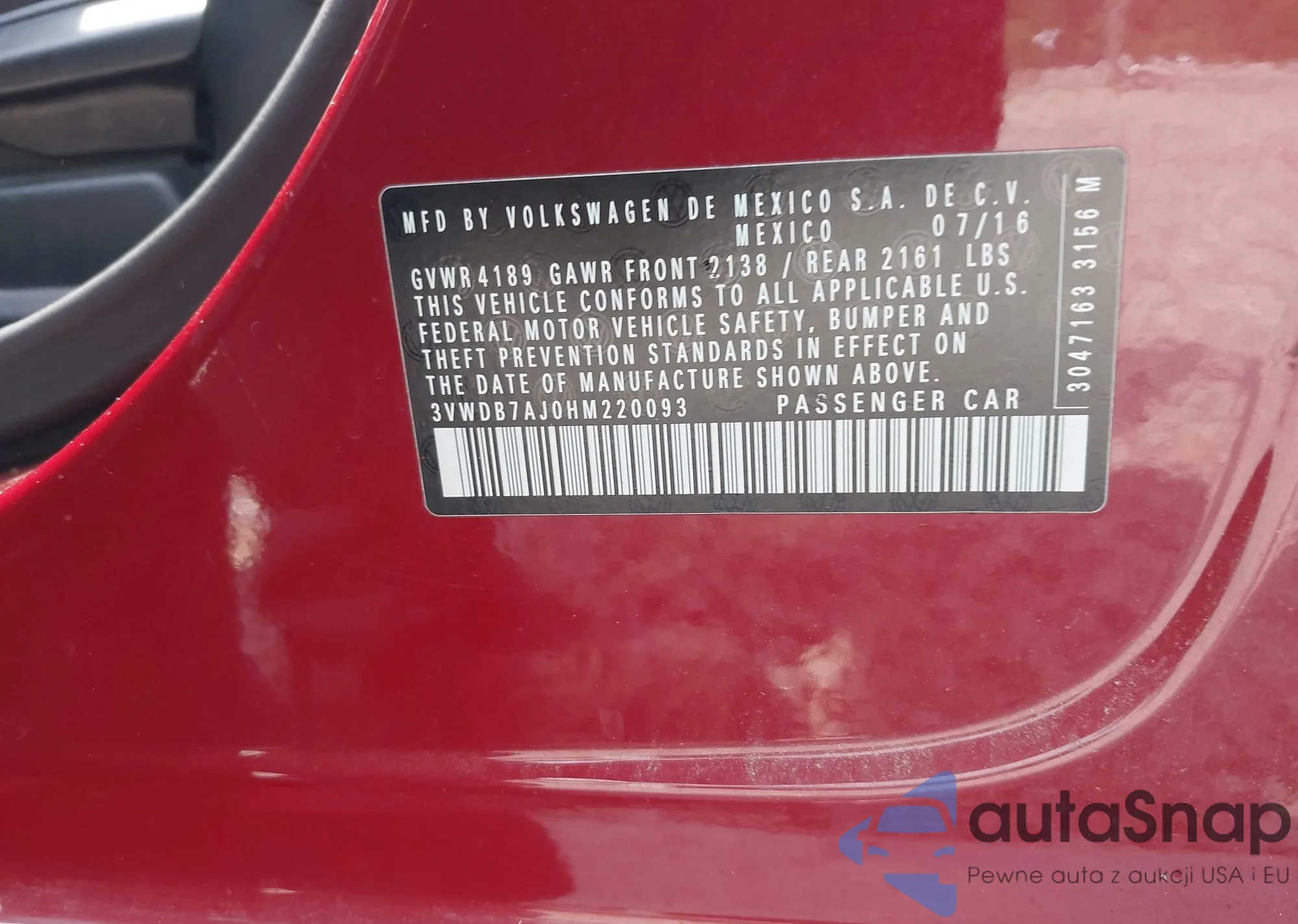 • VIN 3VWDB7AJ0HM220093