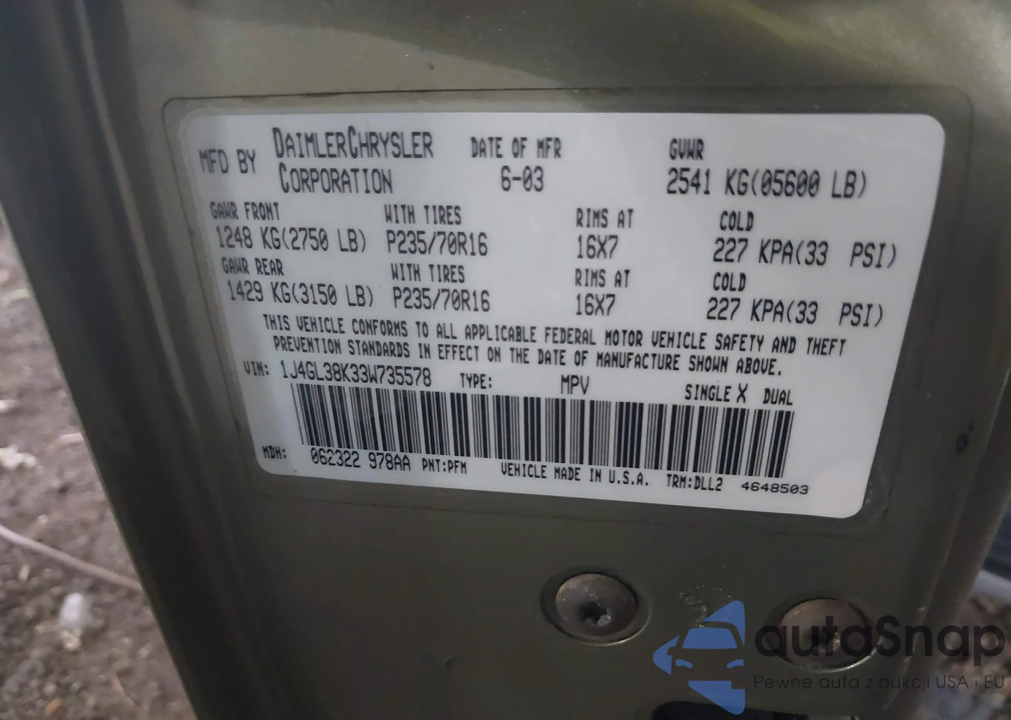 • VIN 2C3CDZJG5MH533355